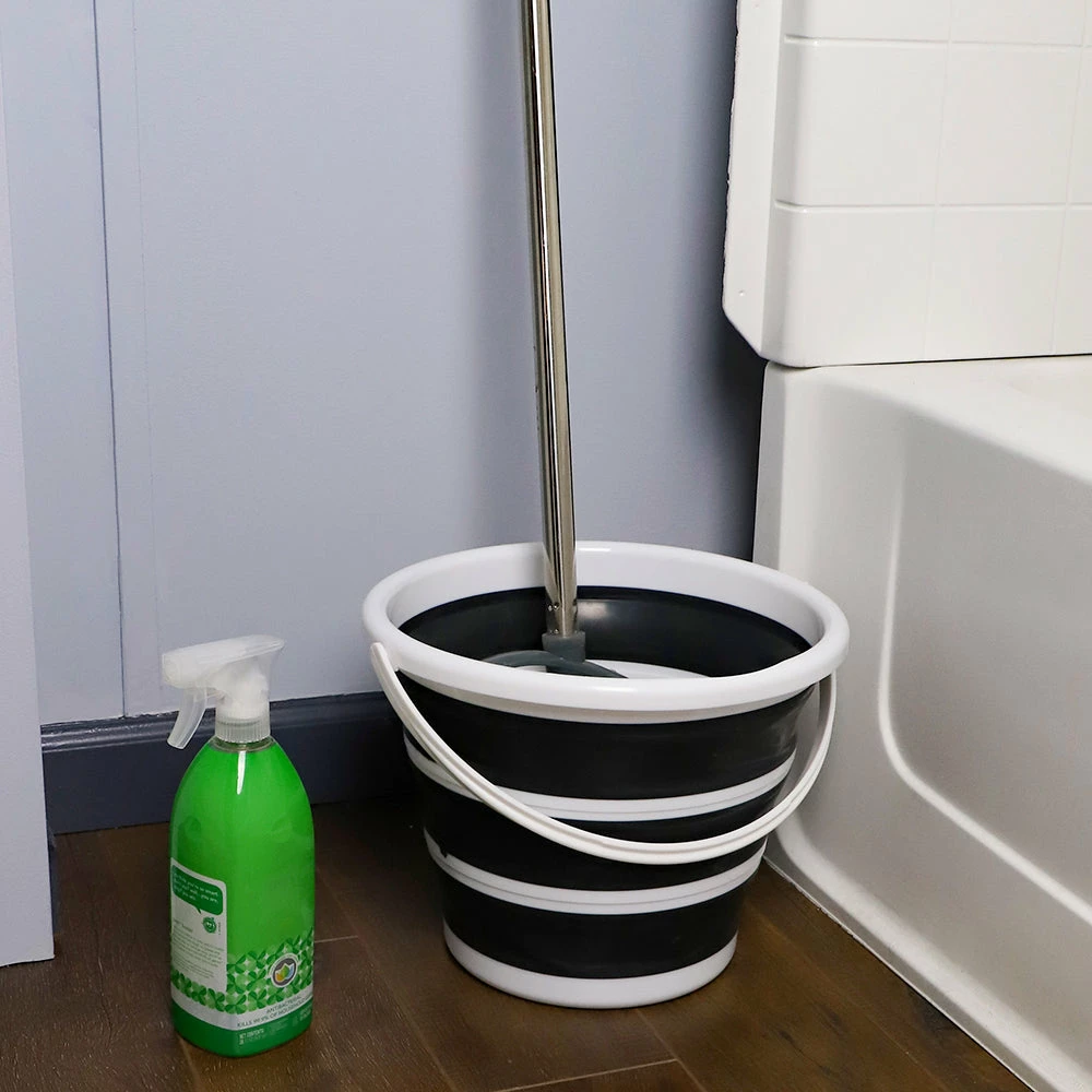 - COLLAPSIBLE FOR EASY, COMPACT STORAGE – The bucket folds flat into a flat circle, making it to wedge between a washer, tuck away under the sink or fit in luggage