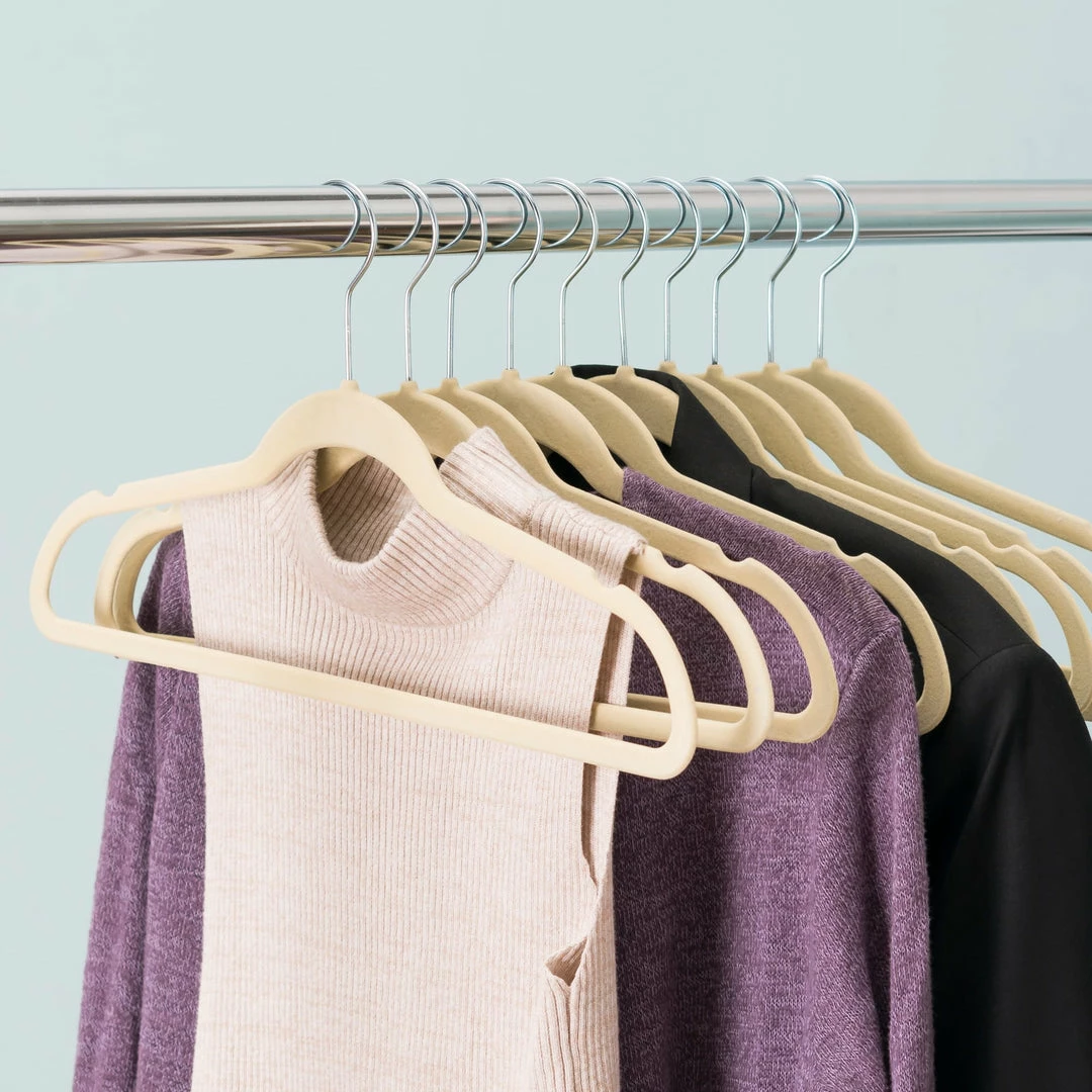 Whether you want to keep that little red dress you wore at the party last night looking as stunning as you are, or that buttoned down polo easily accessible for your 9-5, this lightweight hanger provides the perfect closet storage solution to meet your unique lifestyle. Its soft, non-slip velvet texture offers a luxurious feel while also preventing garments from falling to the ground. The contoured frame features two small evenly spaced space indents on each side of the hanger to ensure your clothing maintains its shape for years to come.