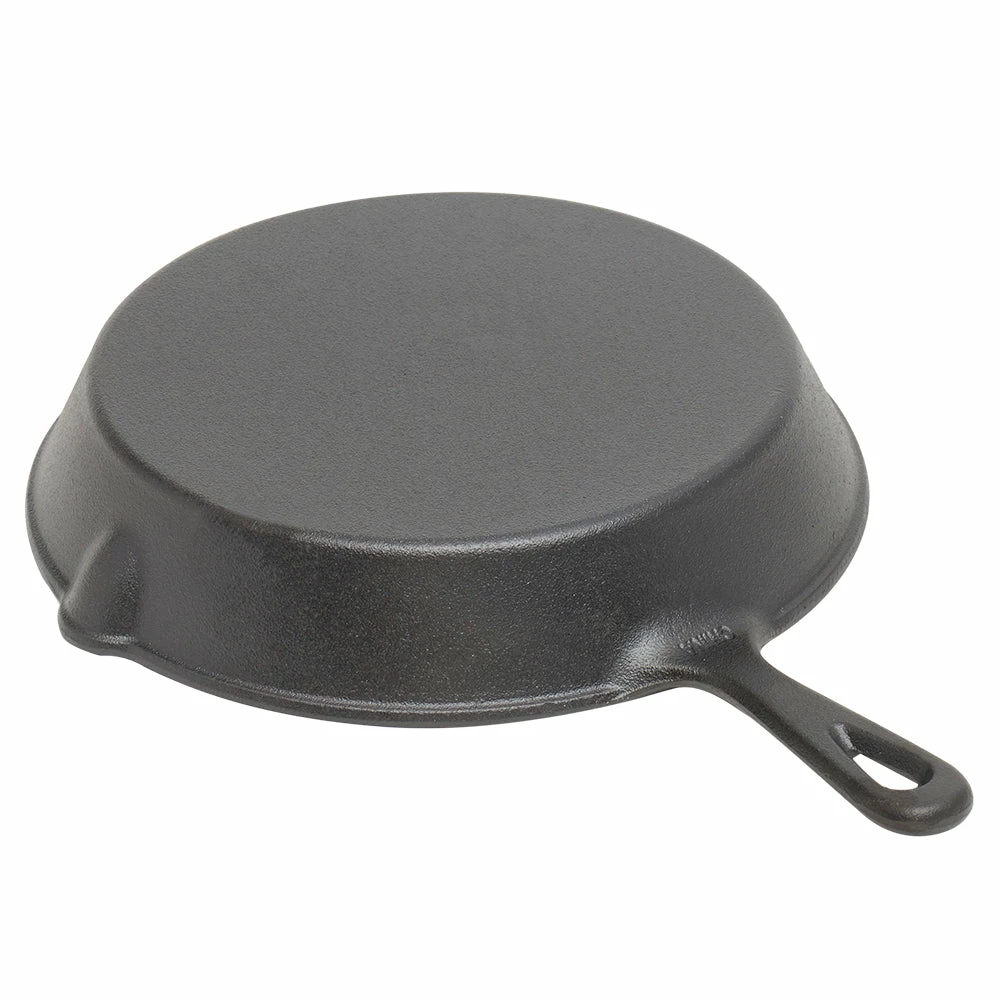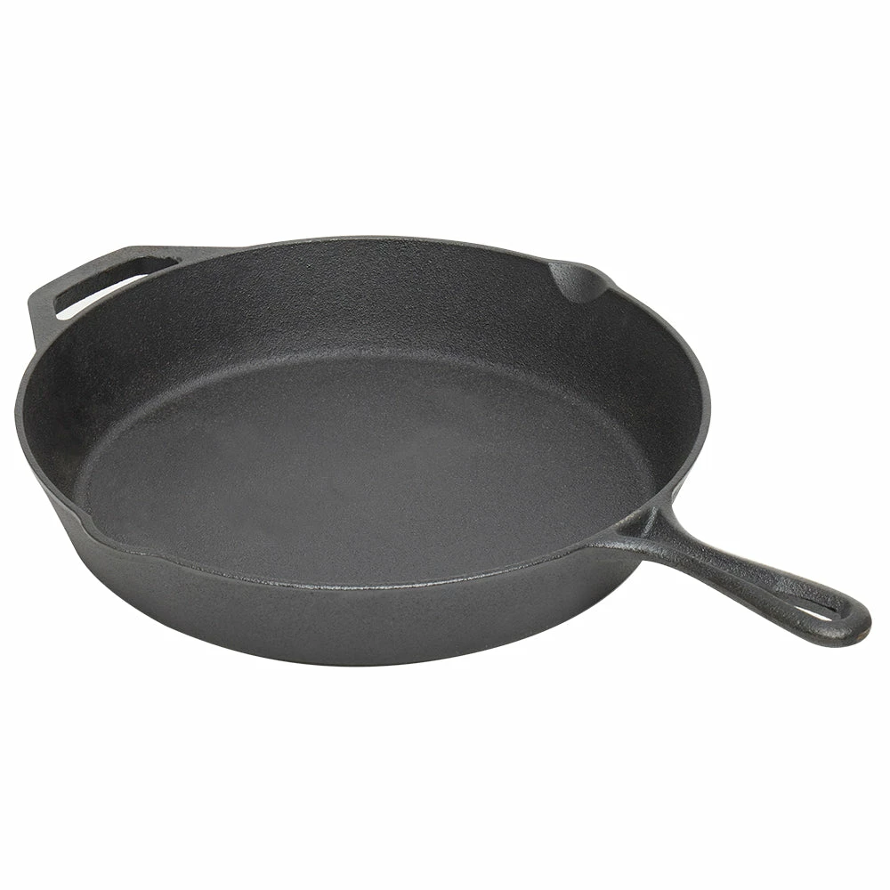 Designed to last for years to come, this skillet is seasoned with natural plant oil for a smooth, quick-release finish that improves over time. Side pour spouts enable you to drain out excess grease and oil. Hanging hole in handle lets you store on a kitchen rack when not in use. Made from heavy duty cast iron, it provides superior heat distribution. The pan is pre-seasoned with natural oil and ready to use at your convenience. Ideal for both indoor and outdoor cooking. Use on a stovetop or on an outdoor grill. Enjoy the durability and convenience that this premium cast iron cookware can bring to your life. Hand wash with warm water and use mild soap. Dry thoroughly with a soft towel. Item dimensions may differ slightly due to the unique nature of the product. Color and finish may also differ from the images shown due to differences in monitor displays. Props and accessories are not included.