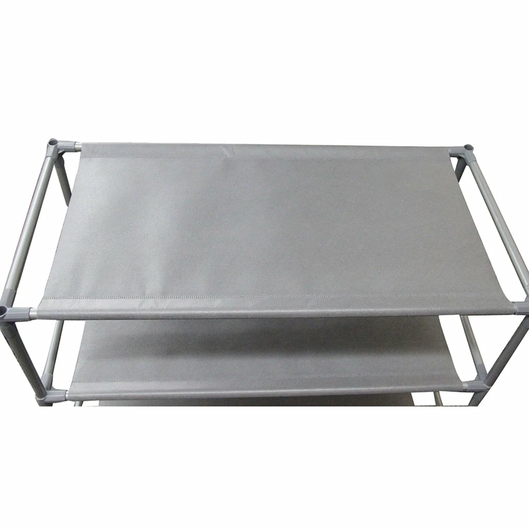 Free up your floor space, while bringing your urban modern, rustic, or industrial style home together with this 12 pair shelf shoe rack. This multi-level shoe organizer features a metal frame with a neutral matte grey finish to coordinate with a variety of spaces. Open non-woven shelves make it easy to find the pair of shoes you need , while also promoting air flow to limit the amount of unpleasant odors that can emit from used shoes. Whether you’re looking to ensure those posh pumps don’t become Fido’s afternoon snack or looking to ensure your teen’s tennis shoes are no scattered across your polished floors, this shoe rack Each non-woven shelf is slip-resistant to ensure your footware collection remains neatly in place for all to admire.