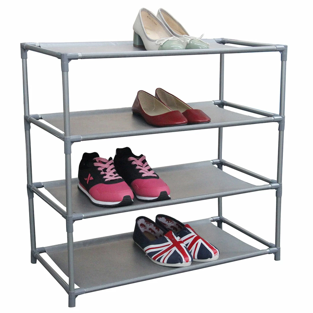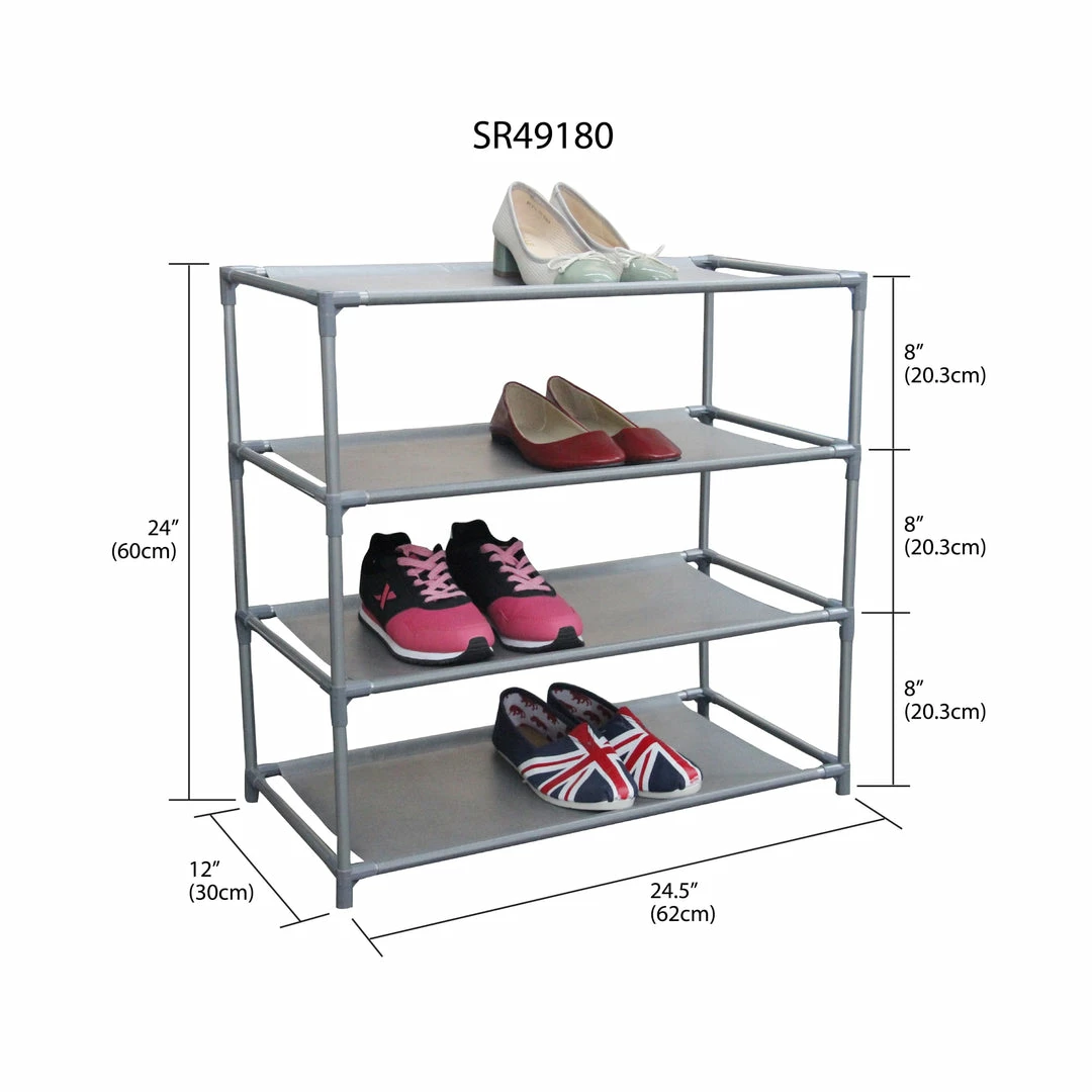 - HOLDS UP TO 12 PAIRS OF SHOES WITH SLIP-RESISTANT TIERS TO KEEP EVERYTHING IN PLACE – With 4 tiers and open style shelves, no longer deal with that dreaded Monday morning frantically looking for those pair of heels to complete your cocktail dress. Or going nuts searching for your workout shoes before you head out to the gym. The shoe rack accommodates up to 12 pairs of shoes cleaning your floors and entryway from clutter.