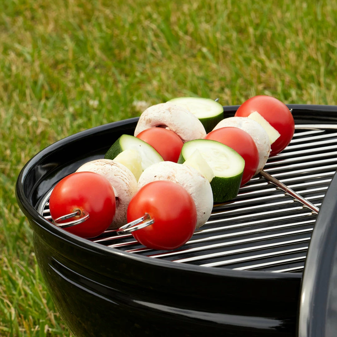 Reducing spinning while providing a sturdy grip, these stainless steel BBQ skewers make grilling kebobs over a barbeque a pleasant experience. Featuring pointy ends, easily load chunks of meat, vegetables, marshmallows on the metal skewers. With long handles, the skewers keep you at a safe distance from the grill. With a pack of 12 youโll have enough to entertain the entire family. Also great for marshmallows. Item dimensions may differ slightly due to the unique nature of the product. Color and finish may also differ from the images shown due to differences in monitor displays. Props and accessories are not included.