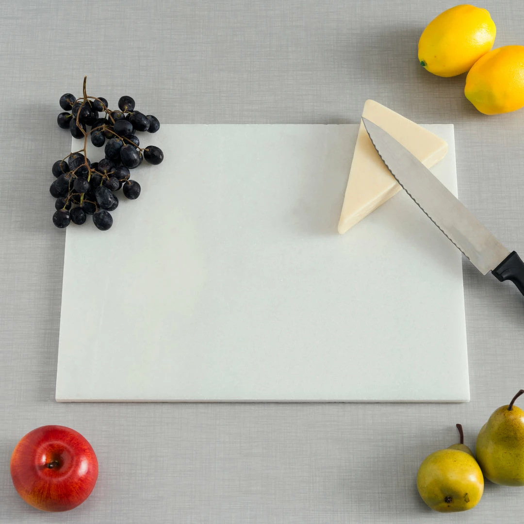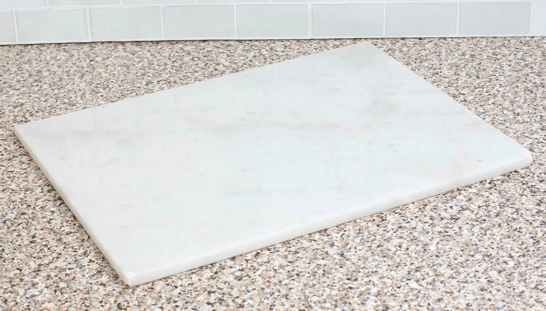 Perfect for prepping pastries or as a beautiful backdrop for your array of colorful appetizers and desserts and even beauty products. This gorgeous cutting board is crafted out of durable marble that remains cool at room temperature, making it great for keeping dough firm as you roll and cut without the need to constantly powder the top with flour. The cool marble surface is ideal for provides ample space for a variety of chopping and baking prepping tasks from rolling out chocolate chip cookies to shaping bread. It is substantial and weight to endure the daily wear and tear of everyday cooking and baking, while the rich veining welcome an aura of elegance to the kitchen.