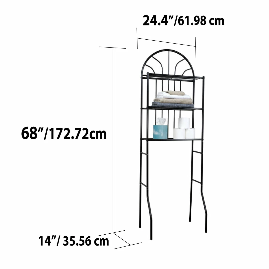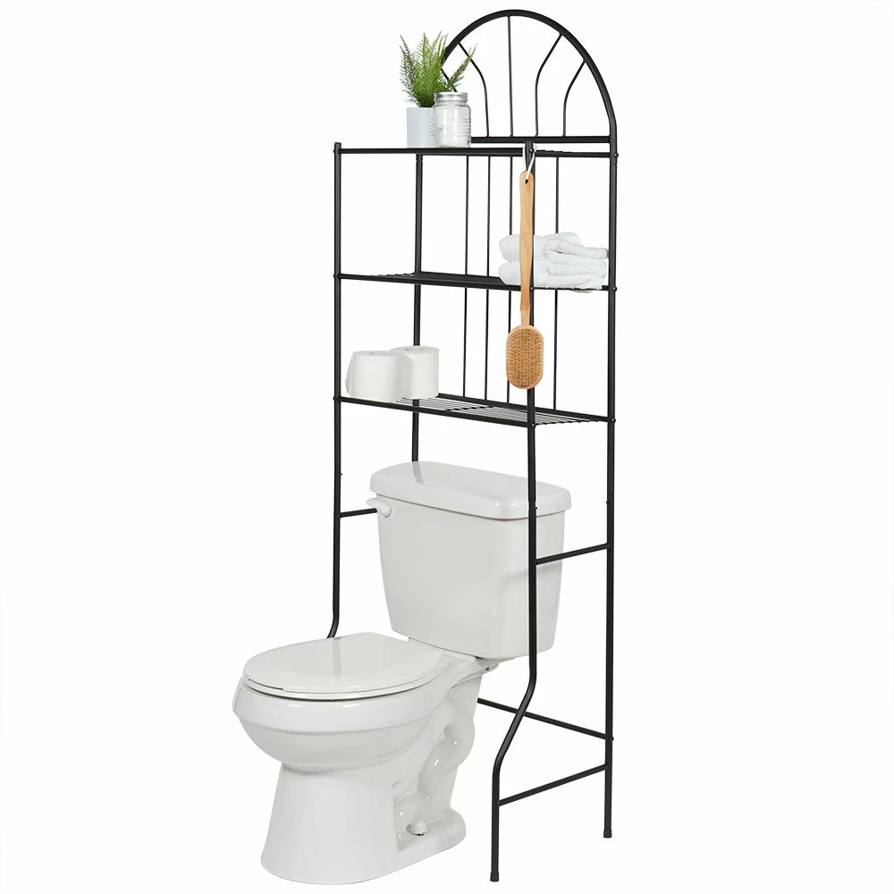 Take advantage of unused vertical space with this sleek, two shelf Bathroom Space Saver. It fits neatly over most standard toilets to maximize your space. With a simple finish, it provides the perfect complement to all your bathroom essentials. Two open shelves let you easily spot what you need. Use the shelves to display spare toilet paper rolls, bath towels, plants and more. With a slim and simple silhouette it adds a charming minimalistic flair to your humble abode.