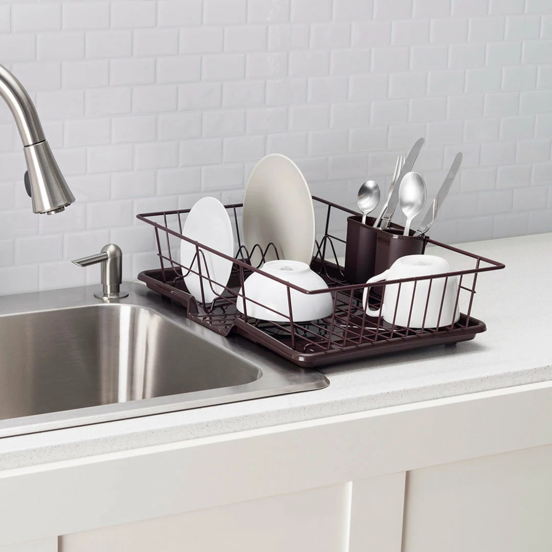 - COMPACT DESIGN MAKES THE MOST OF KITCHENS WITH LIMITED SPACE – A true space-saver compared to the traditional racks, this 3 piece dish rack offers a slim profile that takes minimal space on the counter or sink. Perfect for dorms, small apartments, RV, and small kitchens.