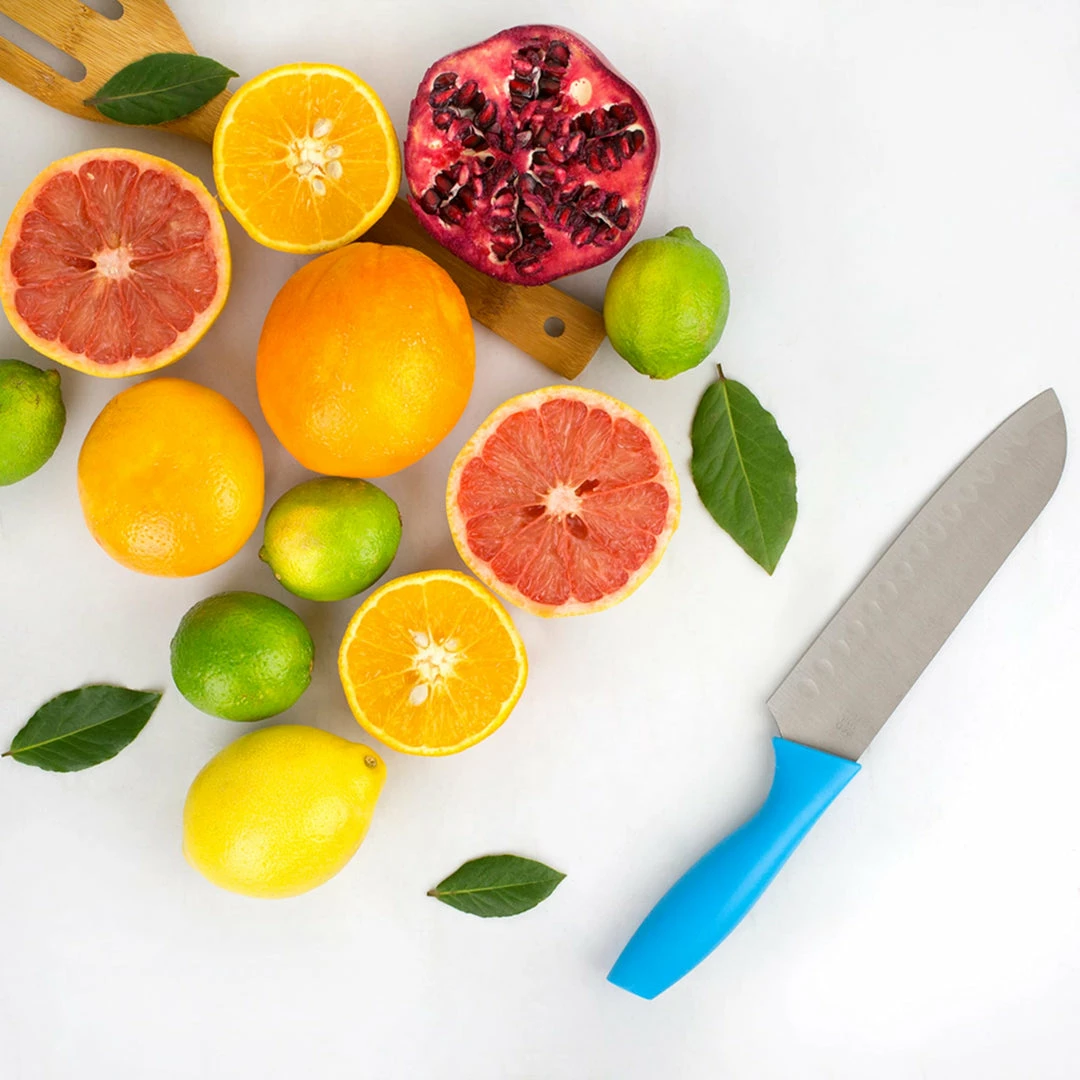 - Set includes 3 knives – 7″ santoku knife, 5″ santoku knife, 3″ paring knife
