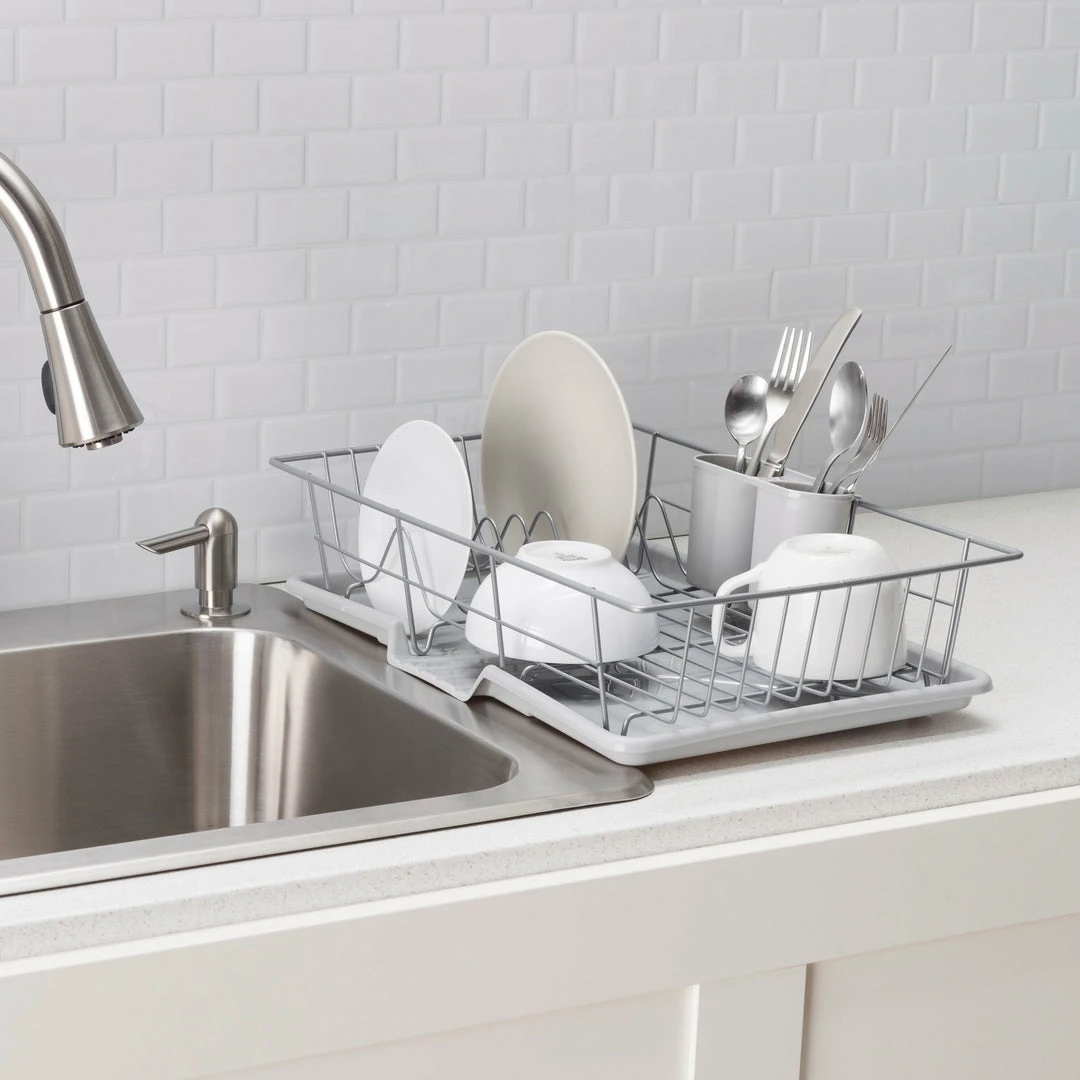 - COMPACT DESIGN MAKES THE MOST OF KITCHENS WITH LIMITED SPACE – A true space-saver compared to the traditional racks, this 3 piece dish rack offers a slim profile that takes minimal space on the counter or sink. Perfect for dorms, small apartments, RV, and small kitchens.