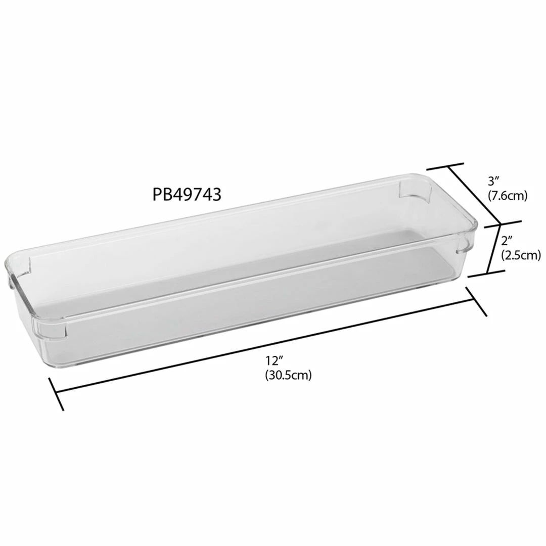 Deck out your drawer space with this contemporary cool drawer organizer. This low profile designed organizer features a rubber liner that keeps items from shifting and protected from dirt. Never worry about scouring through your disastrious drawer to hunt what you need. With its clear design, contents are easily viewable. Use in the office to organize everything post its, thumb tacks, paper clips, staples and more. Or display it in the cupboard to organize your go-to kitchen knick knacks.