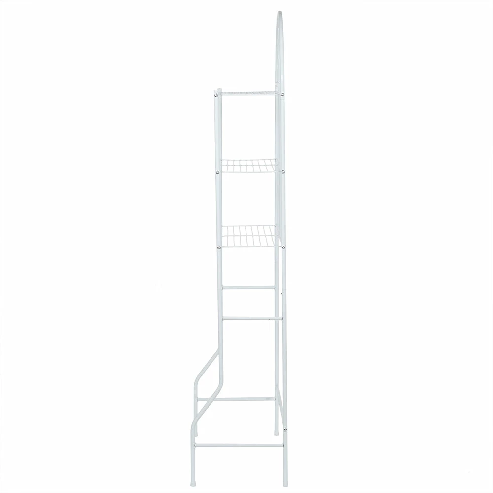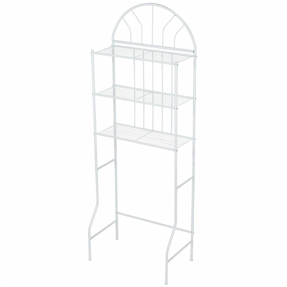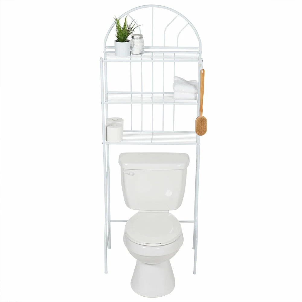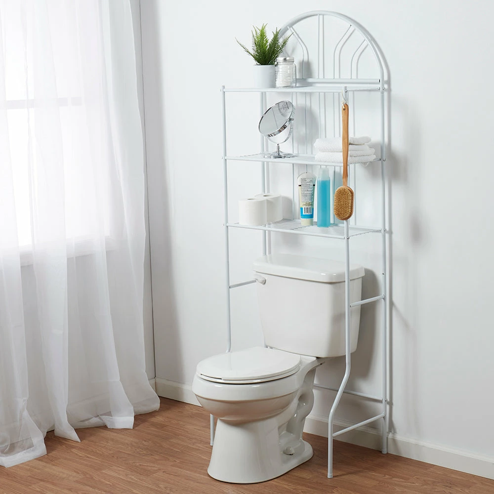 Make use of unused space with this bathroom space saver. Its slim profile conveniently positions over the toilet to hold bathroom and shower essentials. It features three shelves to hold everything from bath towels, folded linen, toilet paper and more. The enamel coated white finish, along with its minimalistic silhouette adds an elegant contemporary flair to any bland bathroom space. Made of enamel coated steel. Rust resistant.