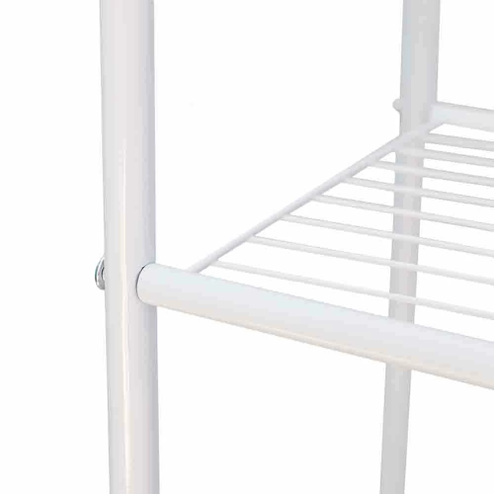 - Made of sturdy steel with a white finish