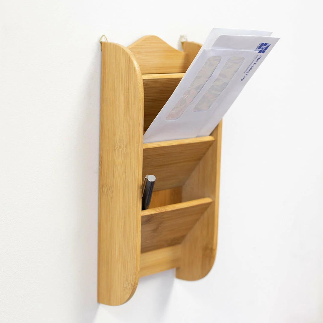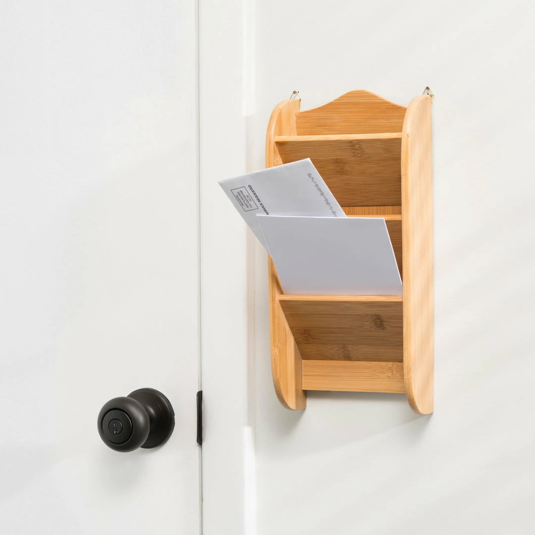 Never worry about losing your mail or important documents with this Home Basics Letter Rack. Made from all natural bamboo, it features a beautiful honey finish. The three level design provides ample space to store stacks of standard size envelopes or large package envelopes. The angled compartments allow you to easily sift through the mail, while curved top adds a subtle stylish flair.