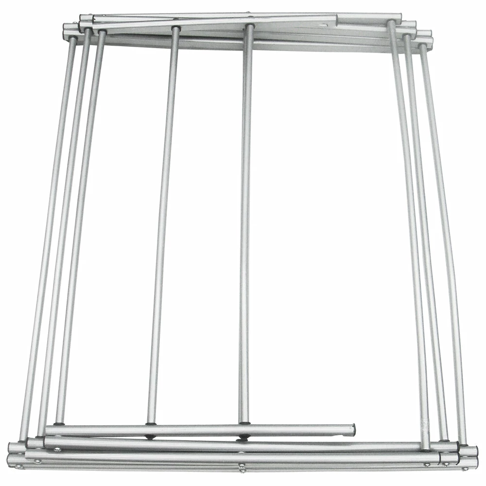 Fed up with your dryer destroying your clothes? Looking for an energy and space-saving solution for air drying laundry. Look no further than this foldable drying rack to gently and safely dry fabrics, while still preserving the quality of your laundry longer. Unlike wooden drying racks that are prone to breakage, it’s made of enamel coated steel for strength and durability, even stocked up with a large load. Itโs lightweight and portable so you can easily place it out on the deck on a sunny day or in the laundry room on rainy day. The top tier features 4 rods that are designed horizontally to create a flat surface for naturally drying sweaters or flat drying delicate items. An additional 6 rods offer ample hanging space for socks, underwear, jeans, and shirts. The drying rack comes fully assembled with no tools required to install. When youโre all done, it collapses flat so you can easily store it discreetly behind a door to save space or next to the washing machine to have it easily accessible for next time.