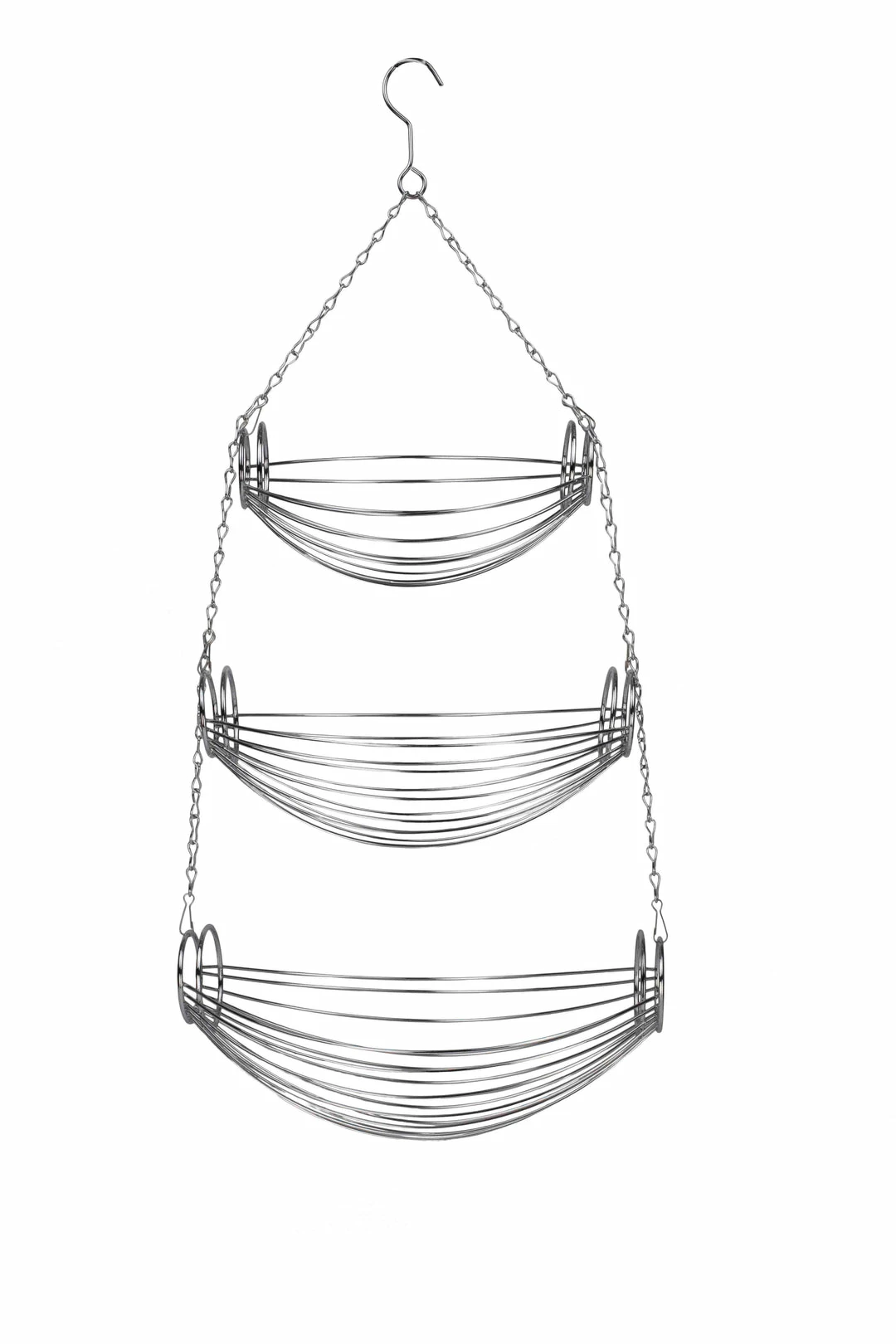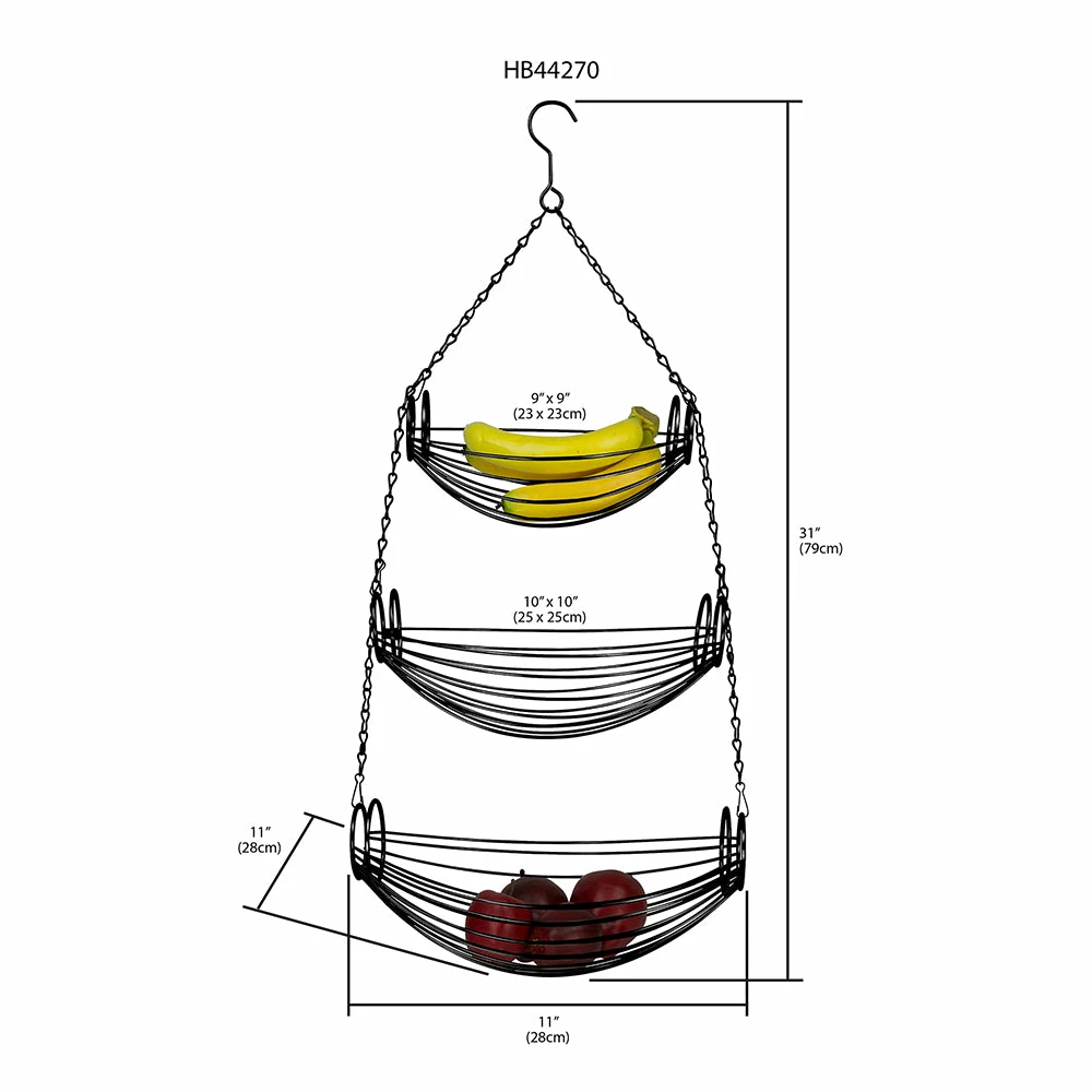 - 3 tiered hanging basket keeps fruits and vegetables fresh and household essentials close at hand