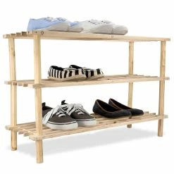 If the sight of a messy pile of shoes in a coat closet drives you bonkers, this shoe rack will help cut the clutter and keep your collection in order. A perfect alternative to traditional enclosed shoe cabinets, this shoe rack is open allowing to quickly spot what you need even during your most hectic mornings. Slatted tiers promote air flow, so odor build-up is reduced, and shoes dry quickly between uses. Place in the foyer, or near an entrance to give guests and members of your entire household a designated area to place shoes and purses. The stackable design allows you to accommodate a growing shoe collection. Spot clean. Assembly is required. Hardware included. Item dimensions may differ slightly due to the unique nature of the product. Color and finish may also differ from the images shown due to differences in monitor displays. Props and accessories are not included.