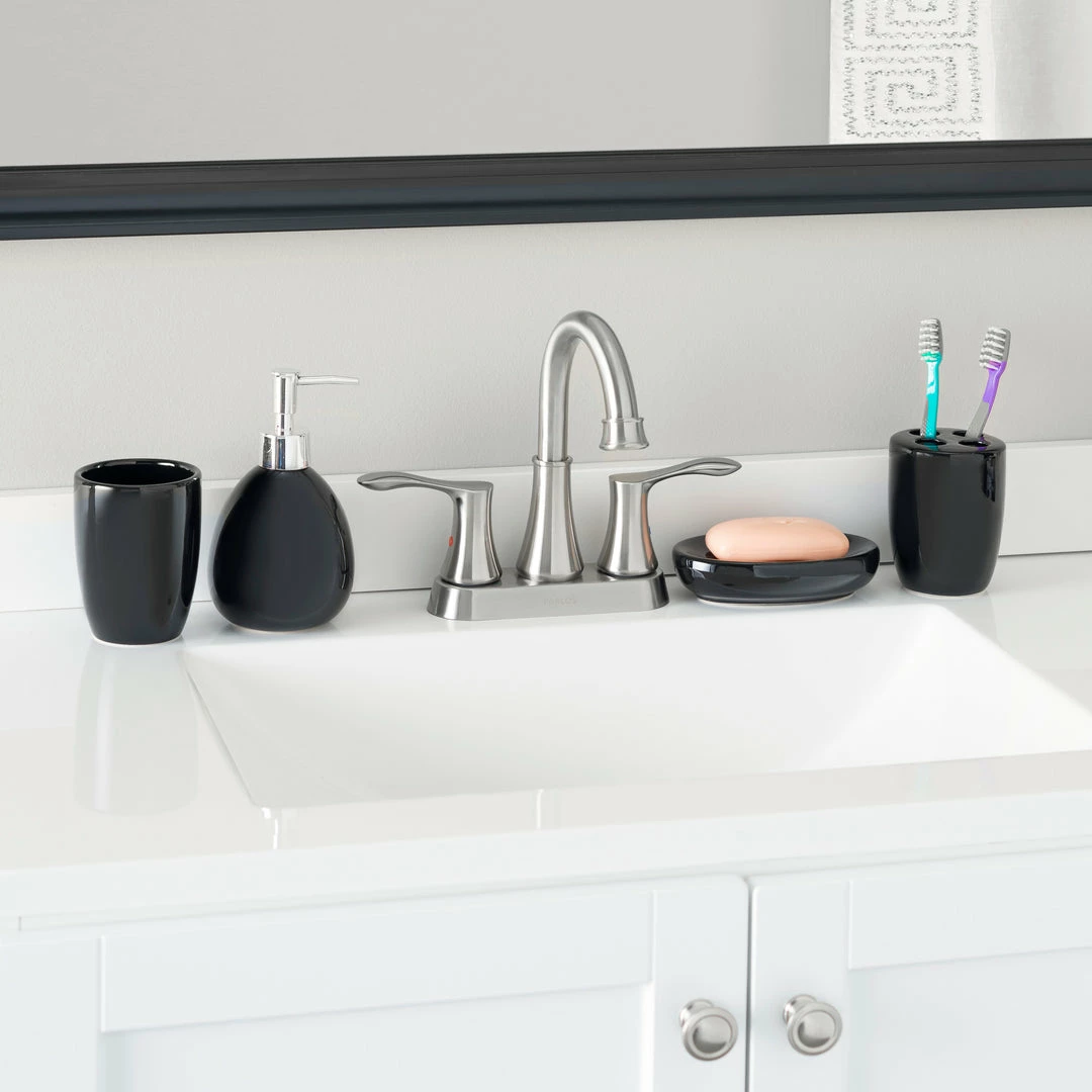 - 4 piece bathroom accessory set eliminates clutter and adds style to the counter or vanity