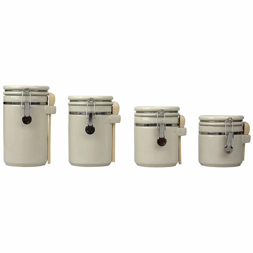 Be the first to review “Outlet โค๏ธ Home Basics 4 Piece Ceramic Canisters with Easy Open Air-Tight Clamp Top Lid and Wooden Spoons, Beige ๐” Cancel reply