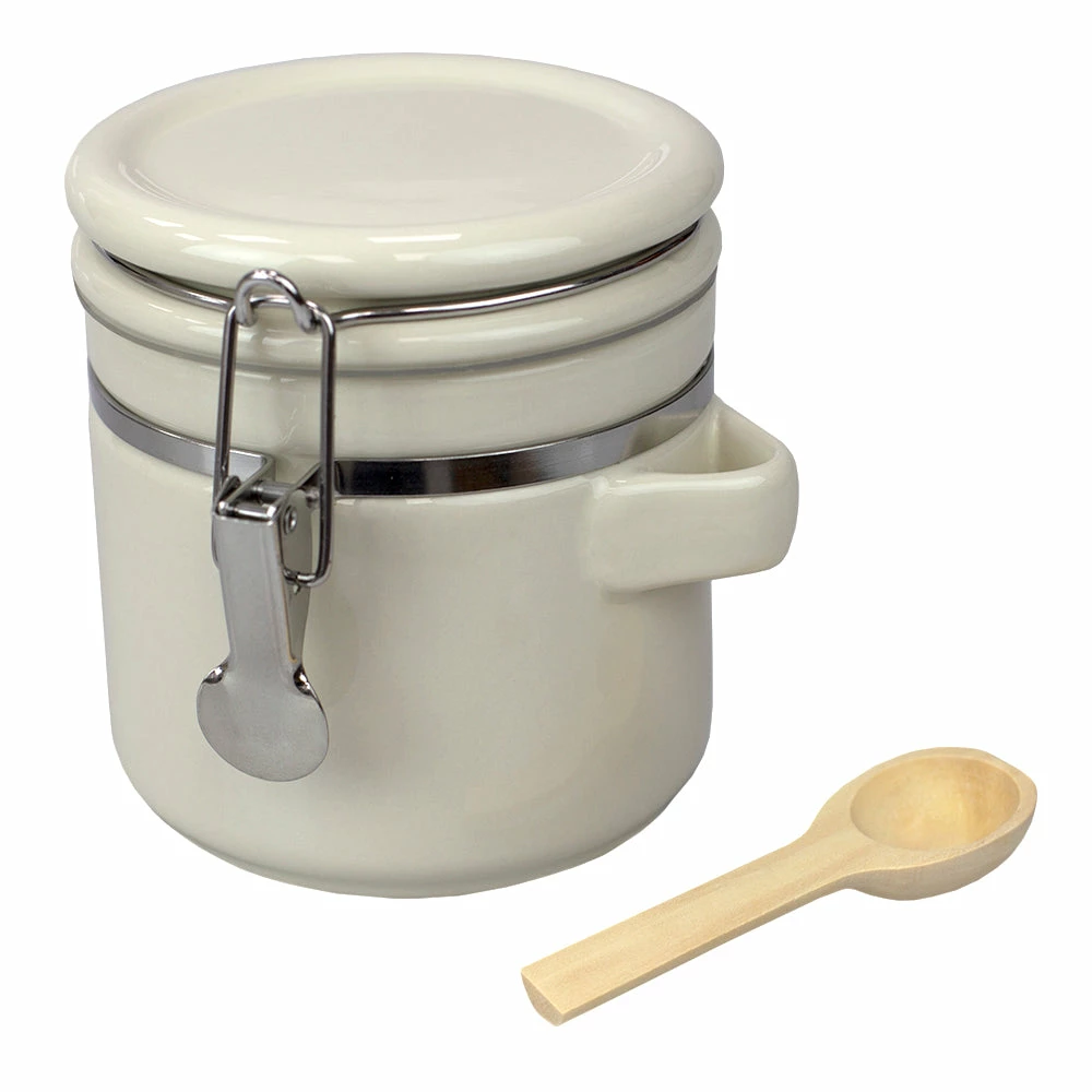 - DURABLE DESIGN – Each canister is made from durable ceramic that will withstand everyday use. Each one is equipped with metal airlight clamp locks that help to conceal the items inside.