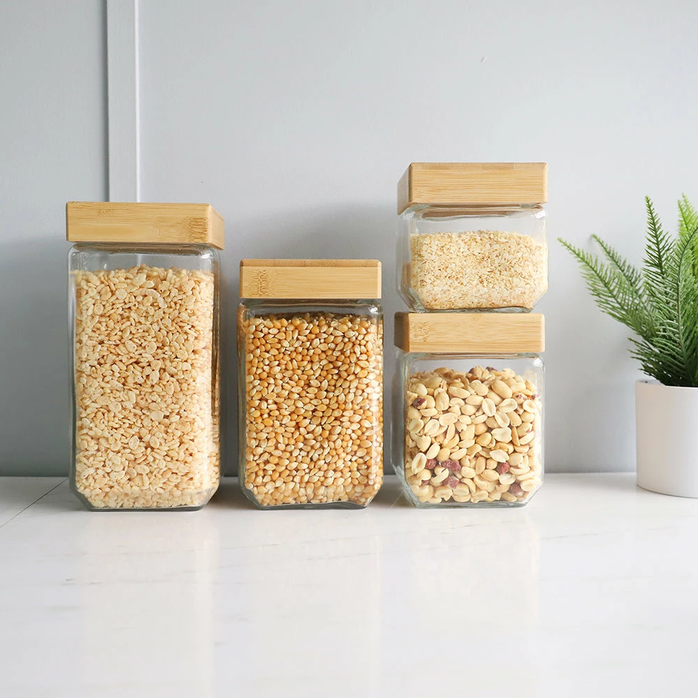 Be the first to review “Outlet โ Home Basics 4 Piece Square Glass Canisters with Bamboo Lids ๐” Cancel reply