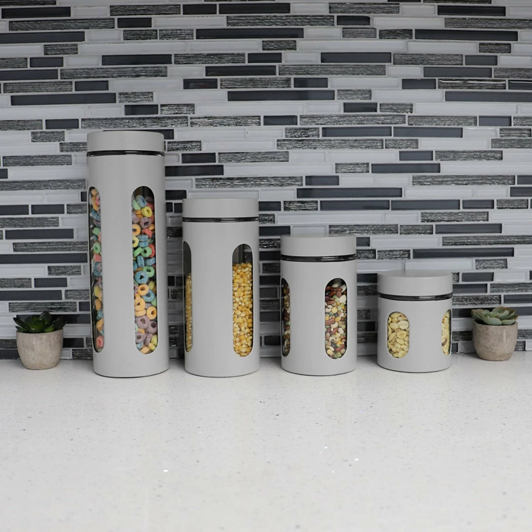 Be the first to review “New ๐ Home Basics 4 Piece Stainless Steel Canisters with Multiple Peek-Through Windows, Grey ๐” Cancel reply