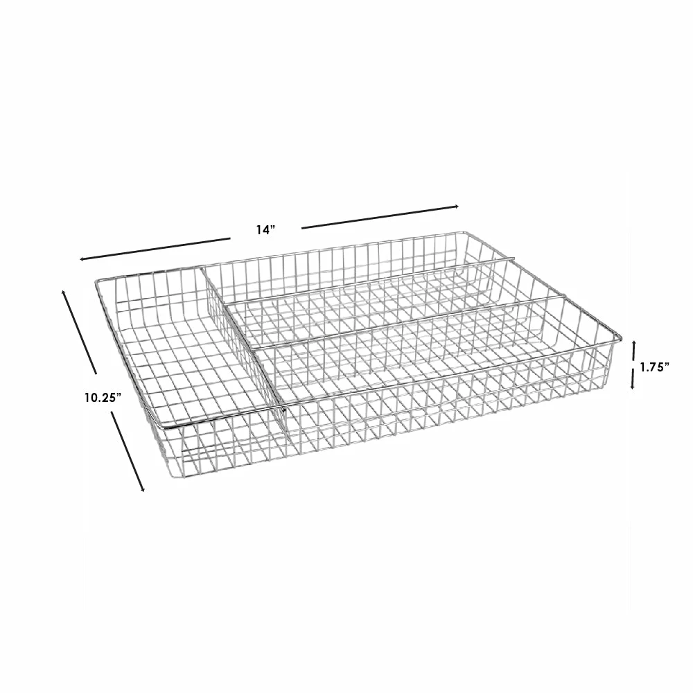 Reorganize your drawers with a modern touch using this cutlery tray in a chrome finish. The weighted steel design prevents it from wiggling around in the drawer. Each of the wide shaped slots are incredibly handy for storing odd shaped gadgets and bulky utensils such as bottle openers and cork screws. The rust-proof metal frame features a grid-like design supplying your silverware the proper air flow it needs to dry quickly.