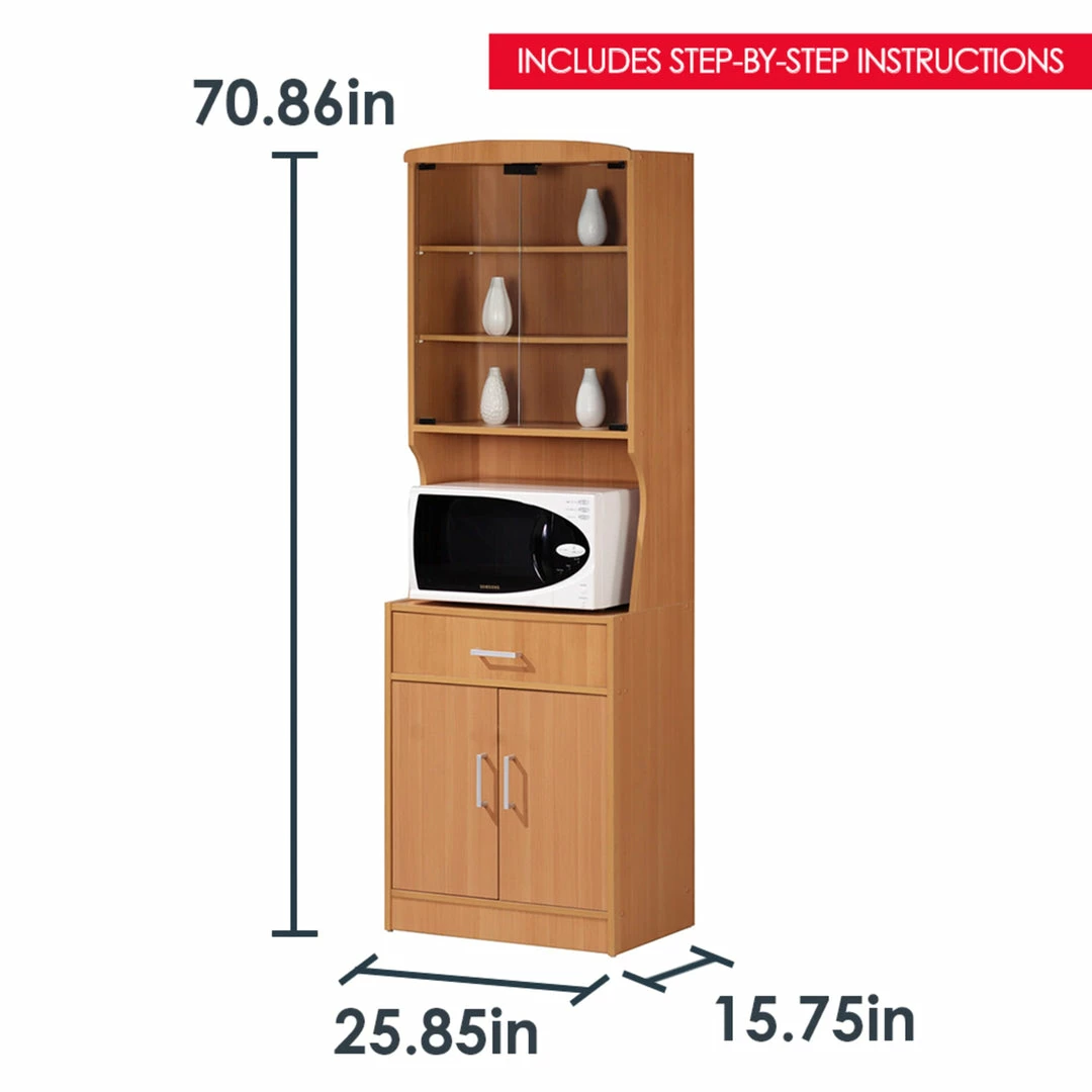 Maximize space in your kitchen while providing clever storage for your microwave with this two tier rack. Middle hooks are perfect for hanging lightweight items such as gadgets, cooking utensils and oven mitts. Made from sturdy steel, it’s built do last. The wood tabletop provides storage for a microwave. Use the top shelf to house condiments and other kitchen essentials. Assembly required. If you’re short on kitchen space and have very little worktop space, you’ll find this rack very useful. Wipe the surface with a clean cloth. Item dimensions may differ slightly due to the unique nature of the product. Color and finish may also differ from the images shown due to differences in monitor displays. Props and accessories are not included.