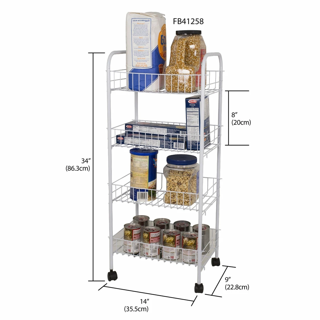 - 4 basket tiers provide ample space to store household supplies, boxed food, vegetables, fruits, and more