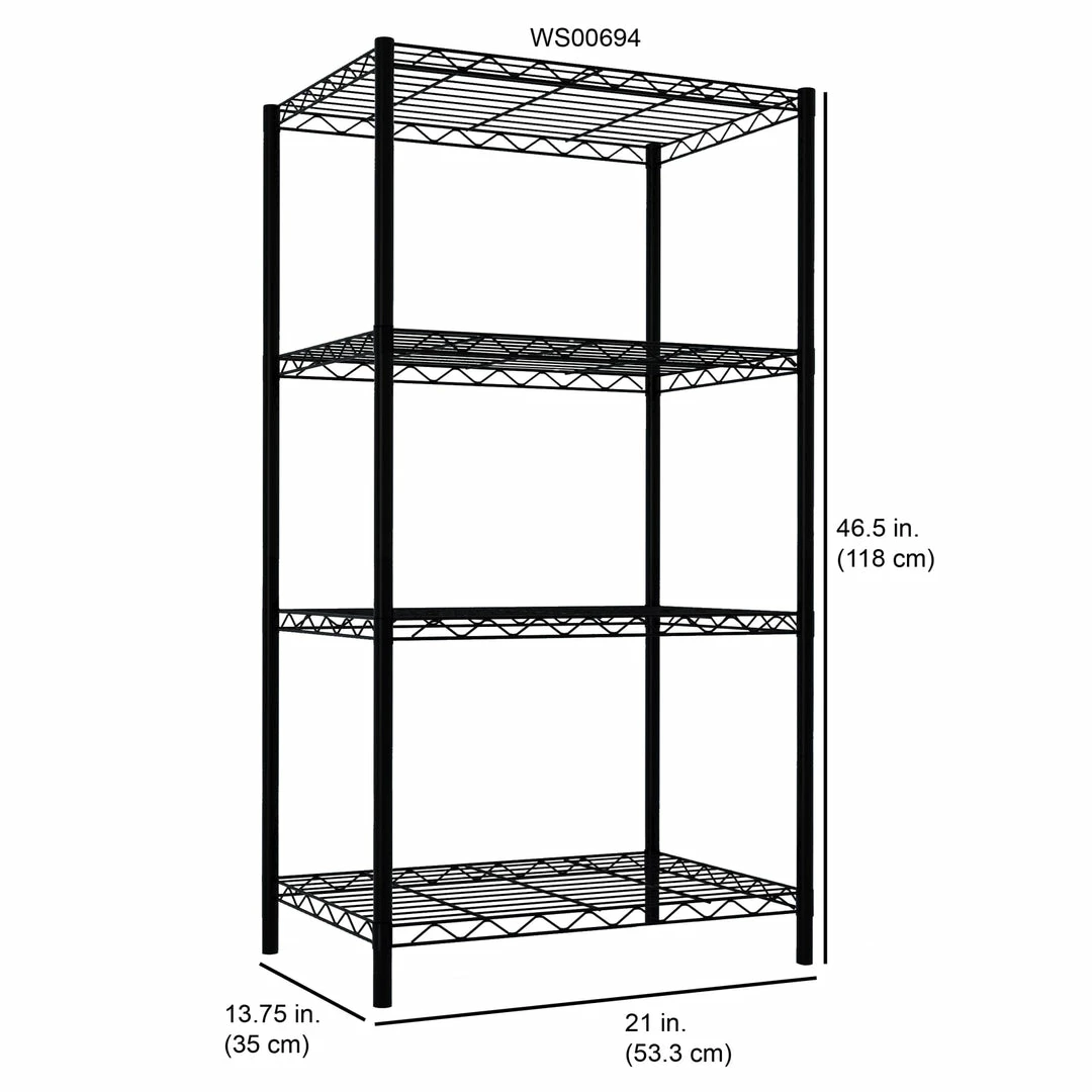 Unlike solid wood shelves that collect dust and debris, this shelving unit boasts an open, wired frame that is specifically designed to increase visibility and ventilation. The shelf is constructed of robust steel offering both contemporary charm and supreme durability. A steel wire shelf that works just about anywhere! With no tools required to install, you can set it right out of the package. Great for the home or office, use it in the kitchen to organize pots and pans. Or use this metal shelf in the living room to keep your collection of your favorite books and magazines neatly organized. This steel wire shelf also can be placed in the garage and basement to organize extension cords, hardware and tools, buckets of paint. It’s incredibly useful in a warehouse to store your products or in the office room to documents and supplies. Each shelf can store up to 50 lbs when evenly distributed. No tools are required to install, so you can easily set it up right out of the box.