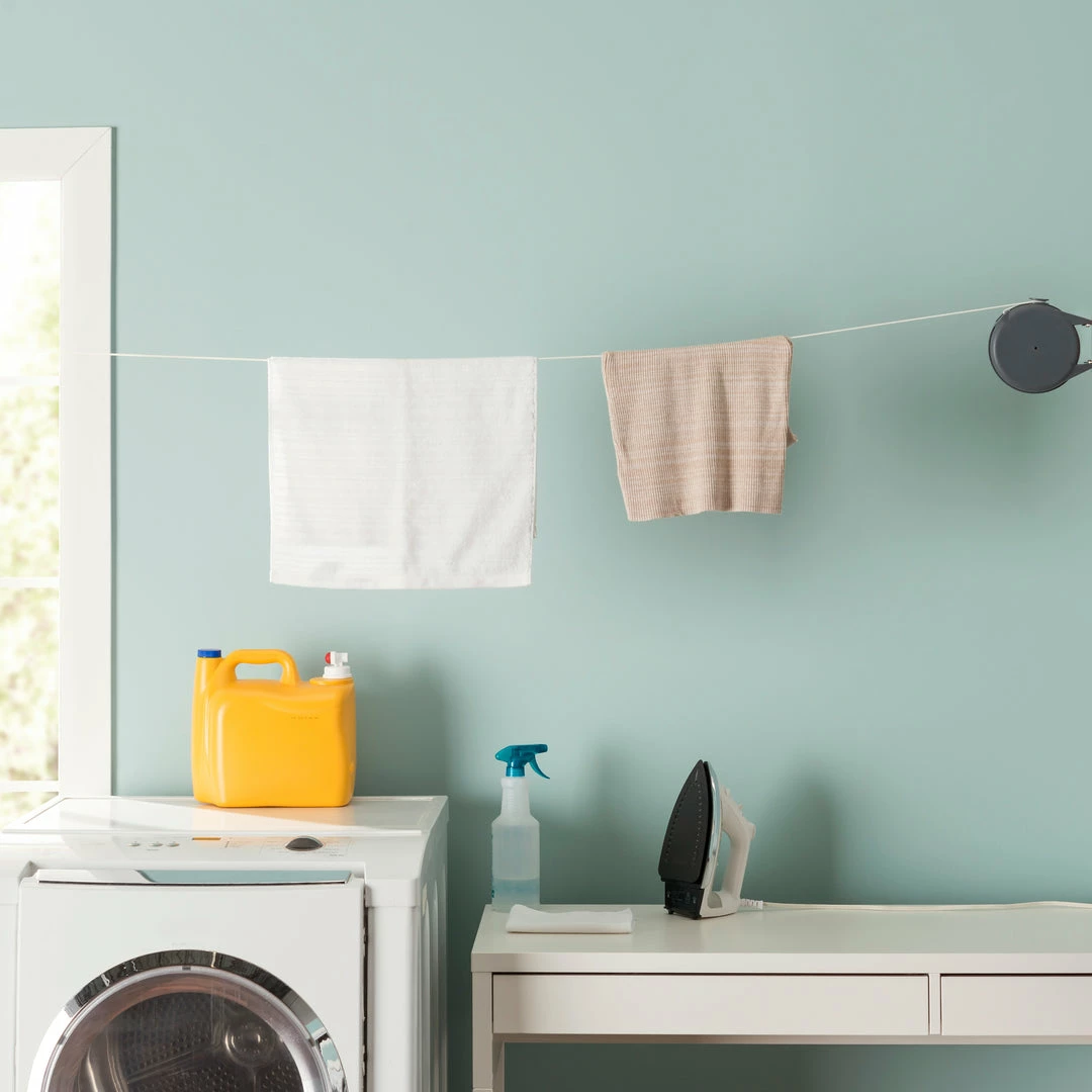 Great if you prefer to line dry your laundry to prevent dryer shrinkage or looking for a temporary and affordable solution for your clothes drying dilemma. With’s rust-resistant mounting bracket, durable plastic case, Itโs easy to install both indoors and out. .There when you need to use it and gone when you donโt need it. It’s an easier option when you donโt want to haul out that hefty clothes drying rack and saves space in the laundry room, basement, patio and deck. It installs easily on wall and winds up in its thick plastic housing. Fasten the mounting plate on wall. Simply release the cord from the clothesline to your desired length up to 40 feet. This high caliber retractable clothesline works great at airing bedding, those over-sized beach towels, delicate garments, hefty pair of jeans, and drapery without it drooping. Enjoy the benefits of 40 feet of eco-friendly linear laundry drying space with this retractable clothesline.