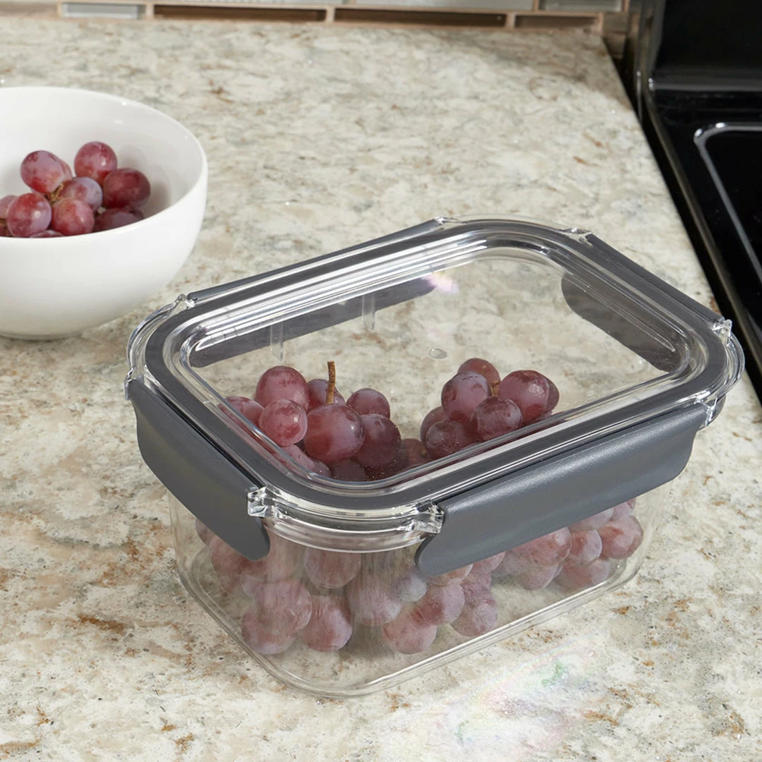 Spilled lunches are a thing of the past when you have this secure airtight food container. A powerful locking system secures the lid to the base, keeping your food from leaking out of the container. Clear around the sides and the top lets you get a full view of what you packed inside without having to remove the lid. This versatile container is great for packing lunch or as a convenient meal prep container. The container is made from sturdy and lightweight plastic to prevent anything from spilling. The counter features a rounded corners making clean up a cinch. Hand wash the unit with warm water and use gentle soap. Dry thoroughly with a soft towel. Item dimensions may differ slightly due to the unique nature of the product. Color and finish may also differ from the images shown due to differences in monitor displays. Props and accessories are not included.