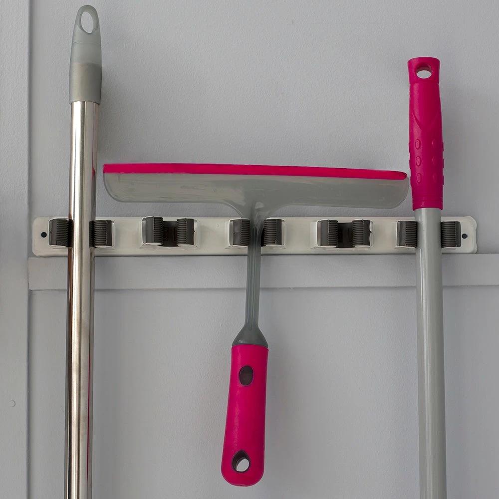 Maximize space and keep your cleaning supplies, tools, and equipment from cluttering your floors with this multi-purpose hanging organizer. Use this wall mounted holder for tidying brooms and mops in the laundry room. Use in the garage to keep gadgets, and yard tools neatly stored and readily accessible. Anchors are supplied with this multi-purpose holder making it easy to set up and starting bringing organizational bliss to your humble abode. Accessories not included.