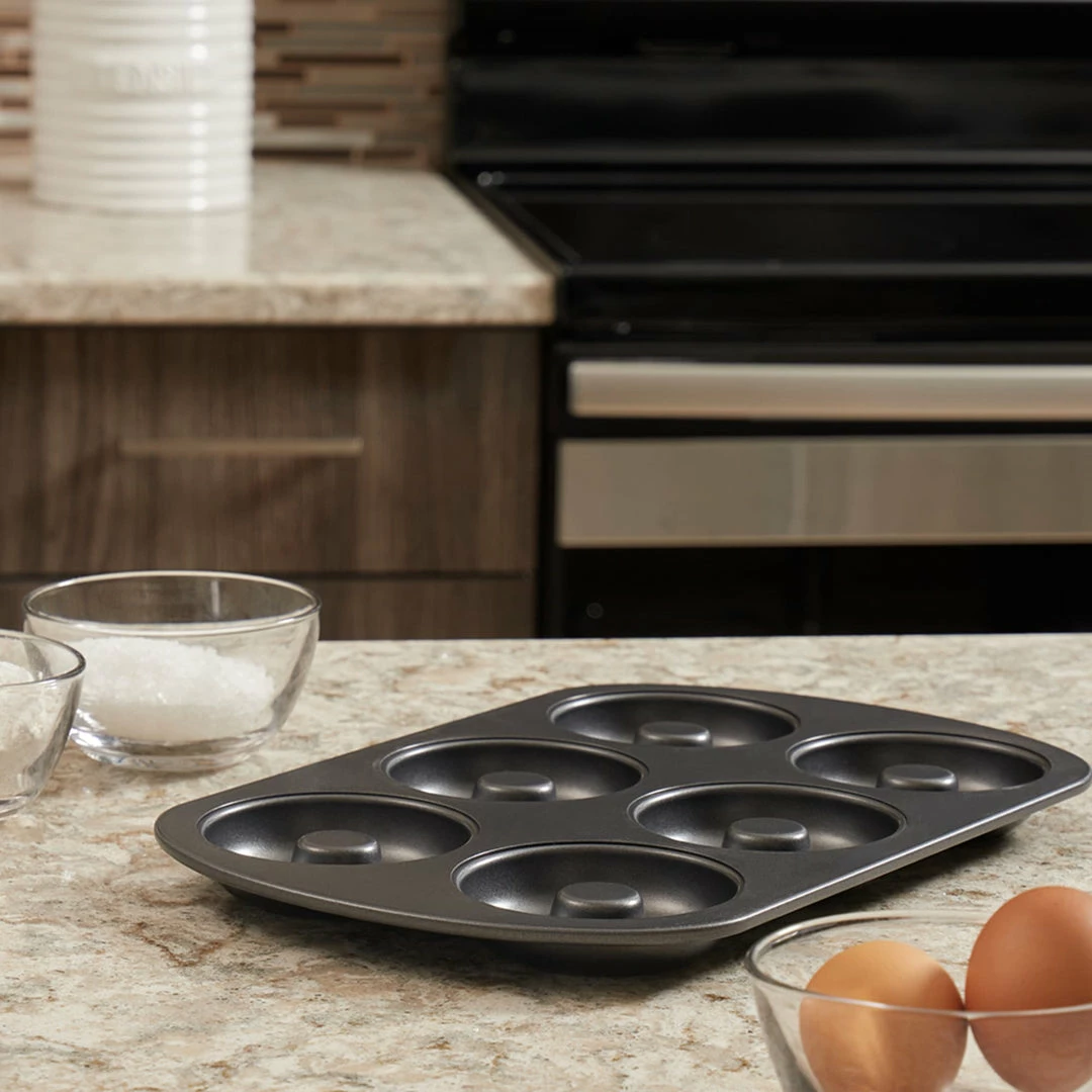 Quickly bake up a delicious batch of donuts. With its non-stick coating, quickly release your freshly baked goods out of the pan. Safe to place in the dishwasher. Dry thoroughly. Item dimensions may differ slightly due to the unique nature of the product. Color and finish may also differ from the images shown due to differences in monitor displays. Props and accessories are not included.