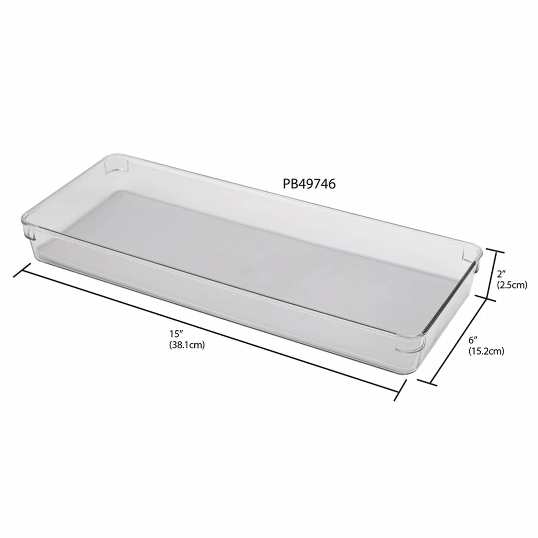 Deck out your drawer space with this contemporary cool drawer organizer. This low profile designed organizer features a rubber liner that keeps items from shifting and protected from dirt. Never worry about scouring through your disastrious drawer to hunt what you need. With its clear design, contents are easily viewable. Use in the office to organize everything post its, thumb tacks, paper clips, staples and more. Or display it in the cupboard to organize your go-to kitchen knick knacks.