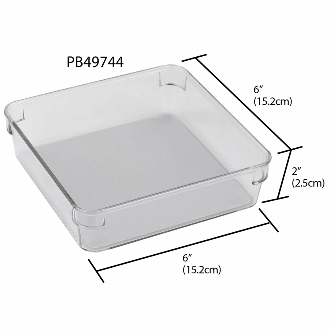Deck out your drawer space with this contemporary cool drawer organizer. This low profile designed organizer features a rubber liner that keeps items from shifting and protected from dirt. Never worry about scouring through your disastrious drawer to hunt what you need. With its clear design, contents are easily viewable. Use in the office to organize everything post its, thumb tacks, paper clips, staples and more. Or display it in the cupboard to organize your go-to kitchen knick knacks.
