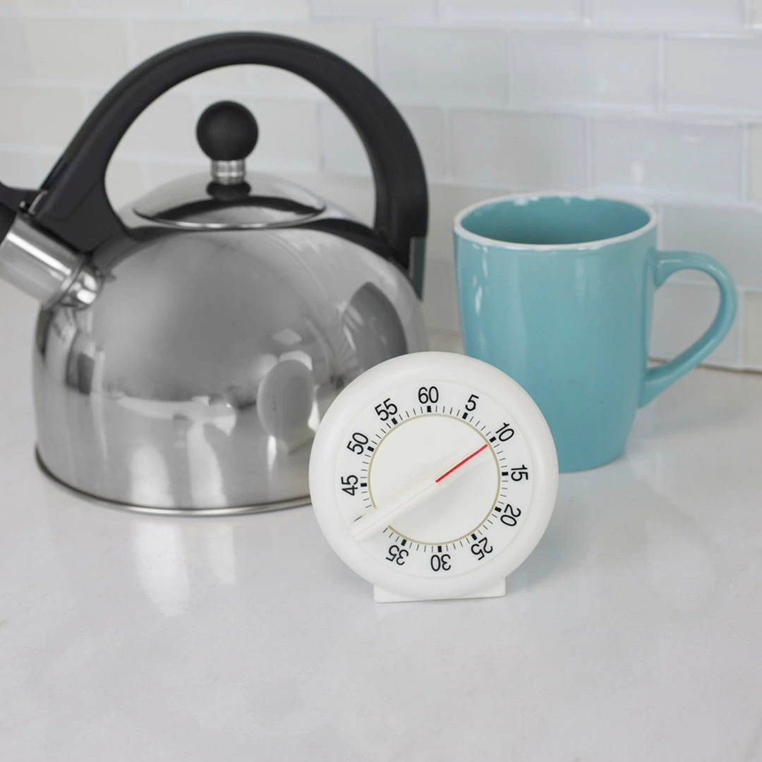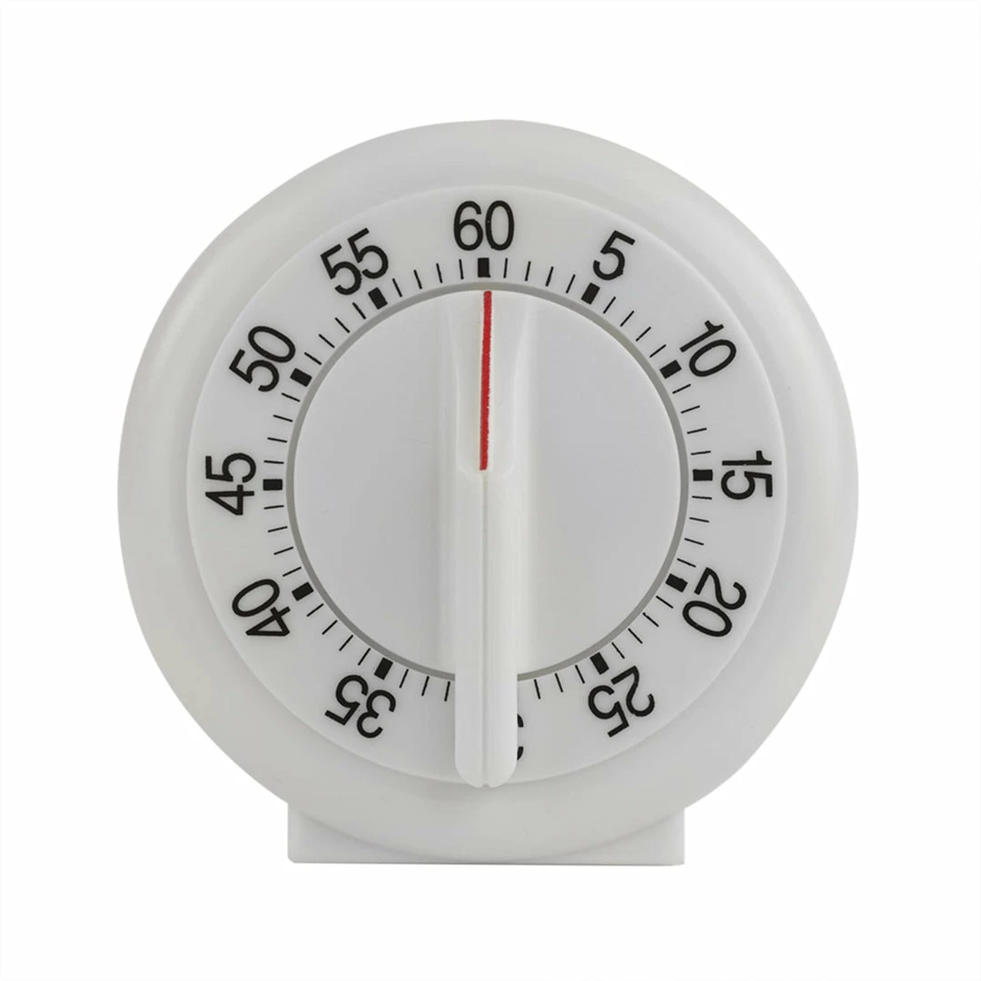 Stay on track on your culinary endeavors, homework tasks, work-out regime and more with this mechanical kitchen timer. Boasting a bright, white finish with clearly printed measurements in bold black, it makes it a breeze to read from across the room. Its compact design makes it perfect to tuck away in a bag, display on a countertop or bedside table. The timer has a 1 hour duration that is perfect to use for a wide tasks from timing your gym session to alerting you when its time to wake up from that cat nap. Twist the top to get this timer ticking. Then wait patiently for its distinct buzz to signal time is up.