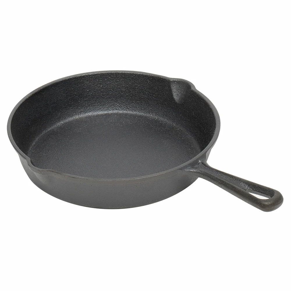 Designed to last for years to come, this skillet is seasoned with natural plant oil for a smooth, quick-release finish that improves over time. Side pour spouts enable you to drain out excess grease and oil. Hanging hole in handle lets you store on a kitchen rack when not in use. Made from heavy duty cast iron, it provides superior heat distribution. The pan is pre-seasoned with natural oil and ready to use at your convenience. Ideal for both indoor and outdoor cooking. Use on a stovetop or on an outdoor grill. Enjoy the durability and convenience that this premium cast iron cookware can bring to your life. Hand wash with warm water and use mild soap. Dry thoroughly with a soft towel. Item dimensions may differ slightly due to the unique nature of the product. Color and finish may also differ from the images shown due to differences in monitor displays. Props and accessories are not included.