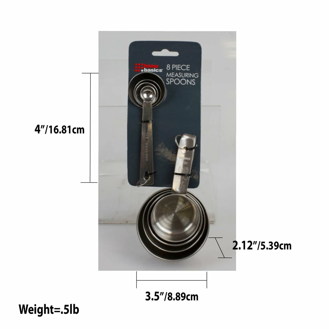 - Nested set includes 4 measuring cups (1/8, 1/4, 1/2, 1and) 4 measuring spoons (1/2, 1 tbl spoon, 1 tsp, 1/2 tsp, 1 tbl spoon)