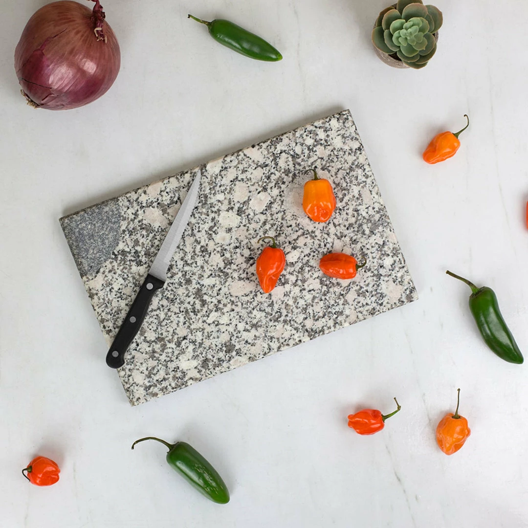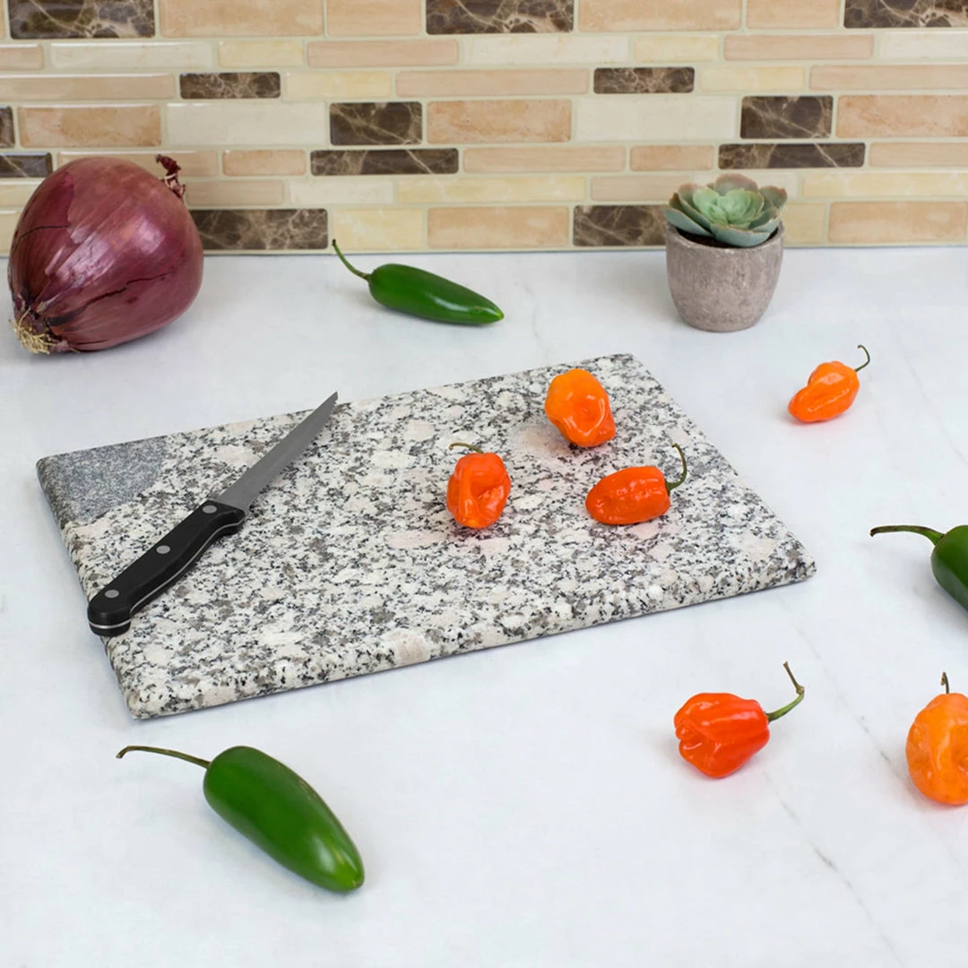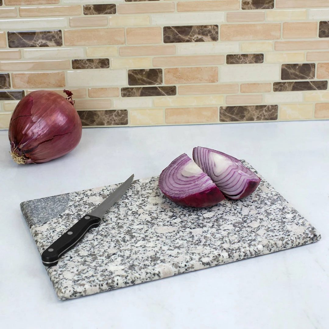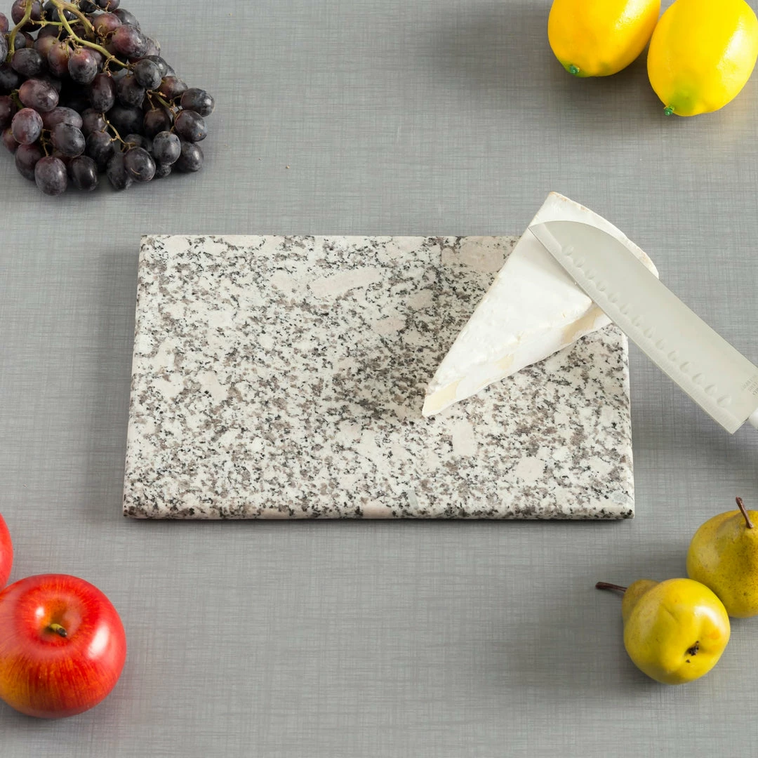 Reminiscent of a polished gem, this granite cutting board brings class and sophistication to food preparation. The heavy duty design provides a durable surface to slice, chop and prep fruit and vegetables. This ultra-sturdy board is both beautiful and easy to clean. No two pieces are the same; They are truly one-of-a-kind. Due to the itemโs natural material, shade and color variations will occur.