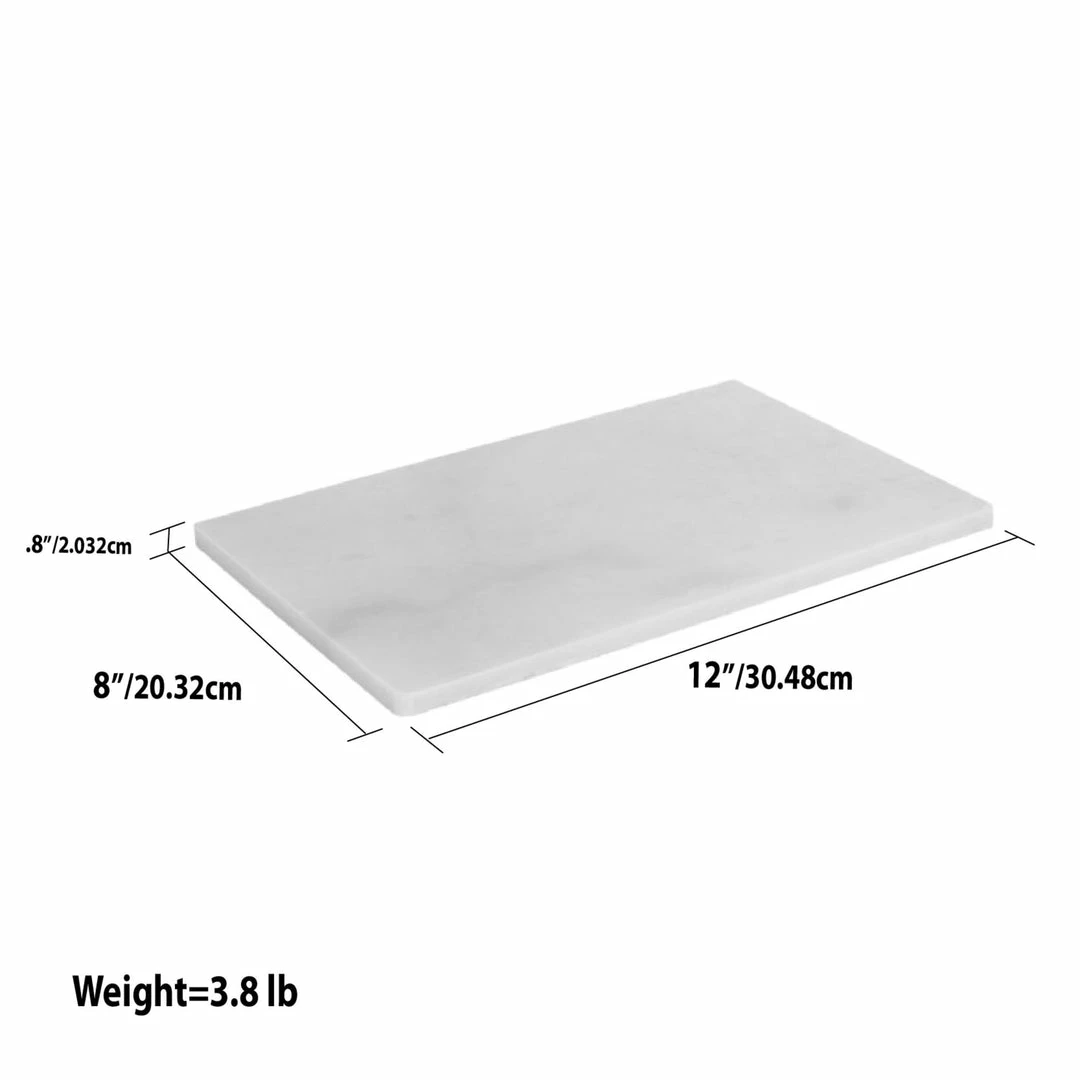 Perfect for prepping pastries or as a beautiful backdrop for your array of colorful appetizers and desserts and even beauty products. This gorgeous cutting board is crafted out of durable marble that remains cool at room temperature, making it great for keeping dough firm as you roll and cut without the need to constantly powder the top with flour. The cool marble surface is ideal for provides ample space for a variety of chopping and baking prepping tasks from rolling out chocolate chip cookies to shaping bread. It is substantial and weight to endure the daily wear and tear of everyday cooking and baking, while the rich veining welcome an aura of elegance to the kitchen.