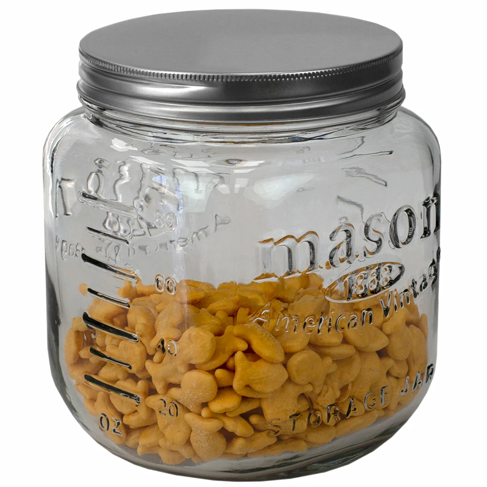 The versatile glass mason jar features thick glass walls with measurement indicators on the side. Beyond canning jams, storing honey, this mason jar is great for storing coffee beans, flour, sugar, or other dried ingredients you want close at hand. Store and showcase your favorite foods. Or load it up with candies and other sweet treats for the perfect home-made gift.