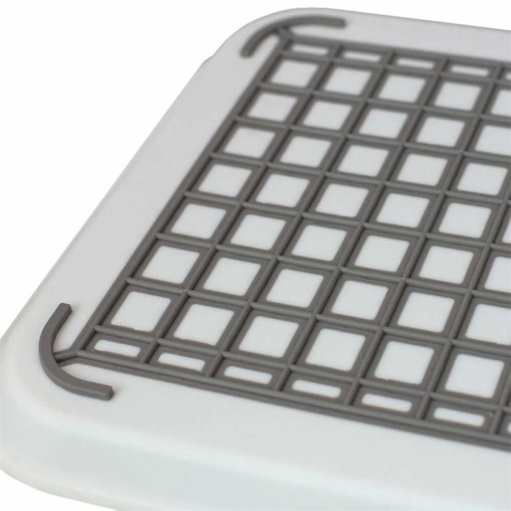 - Non-slip, patterned rubber surface on top and bottom prevents food and drinks from toppling over