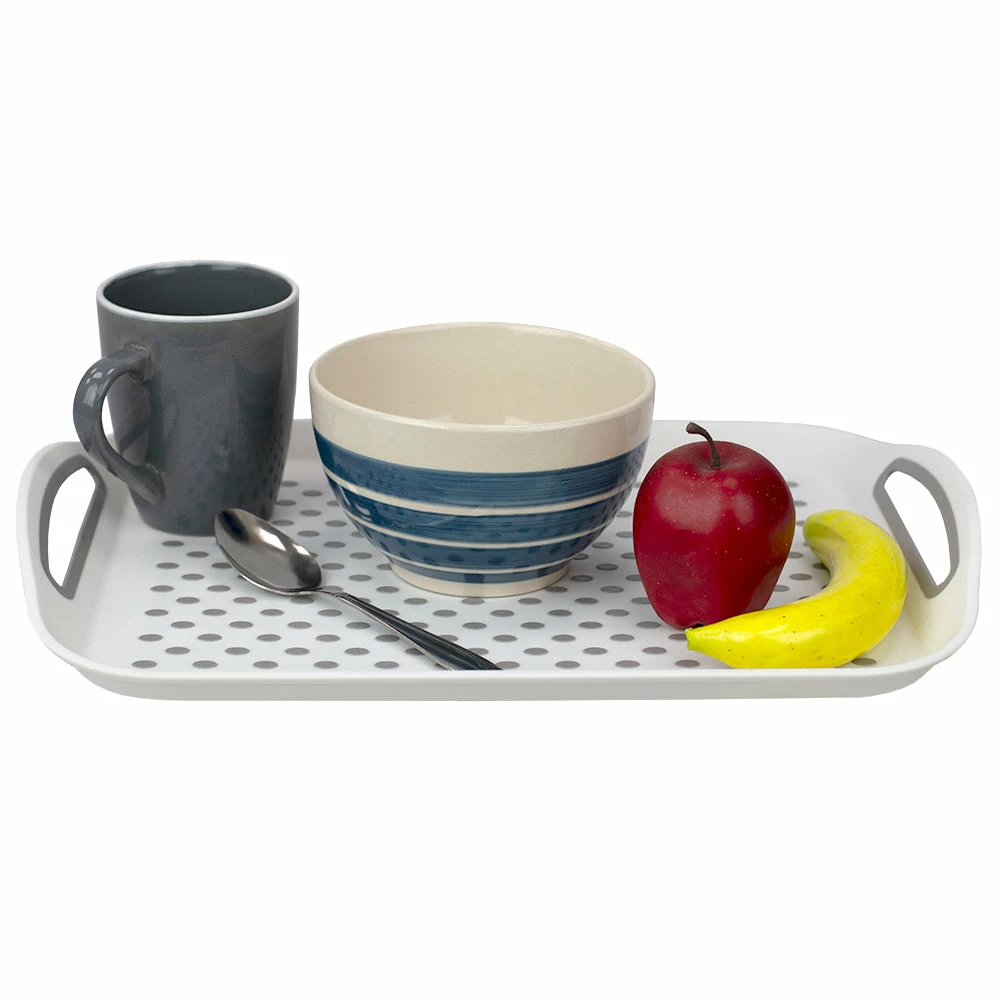 - Large, rectangle shape anti-slip serving tray keeps drinks and meals steadily in place