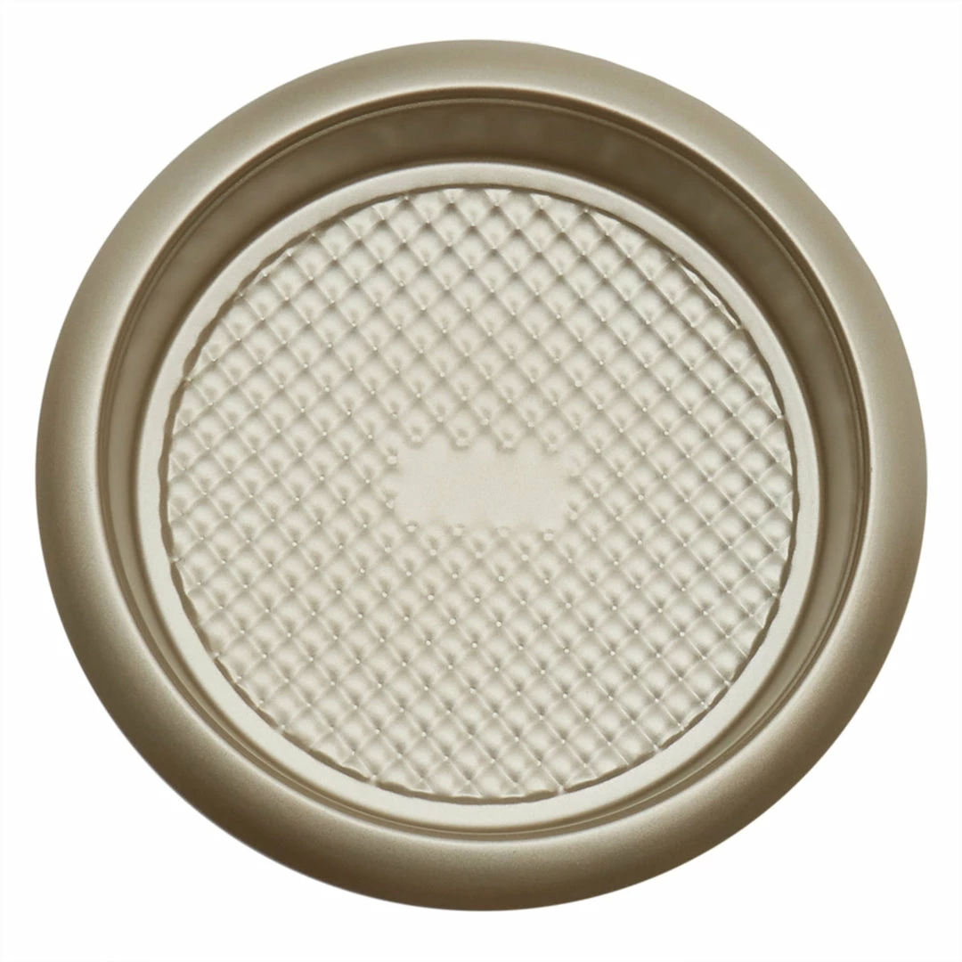 Baking the perfect round desert is easy as pie with this circle shaped pan. Use this pan for perfectly round pies, layered birthday cakes, and a variety of other delicious foods. Crafted from premium non-stick carbon steel, the pan distributes heat evenly, while the textured interior allows air to circulate for an effortless release. Durable side walls leave you with clean and crisp edges which make it a breeze to smooth out icing or apply frosting. Gift multiple to give to friends and family or use more than one to build a stunning multi-tiered layered cake. A superior non-stick coating helps prevent food from clinging onto the pan, making clean up a breeze. Oven safe up to 220 degrees Celsius/428 degrees Fahrenheit. PFOA, PFTE, and BPA Free. Dishwasher safe. Item dimensions may differ slightly due to the unique nature of the product. Color and finish may also differ from the images shown due to differences in monitor displays. Props and accessories are not included.