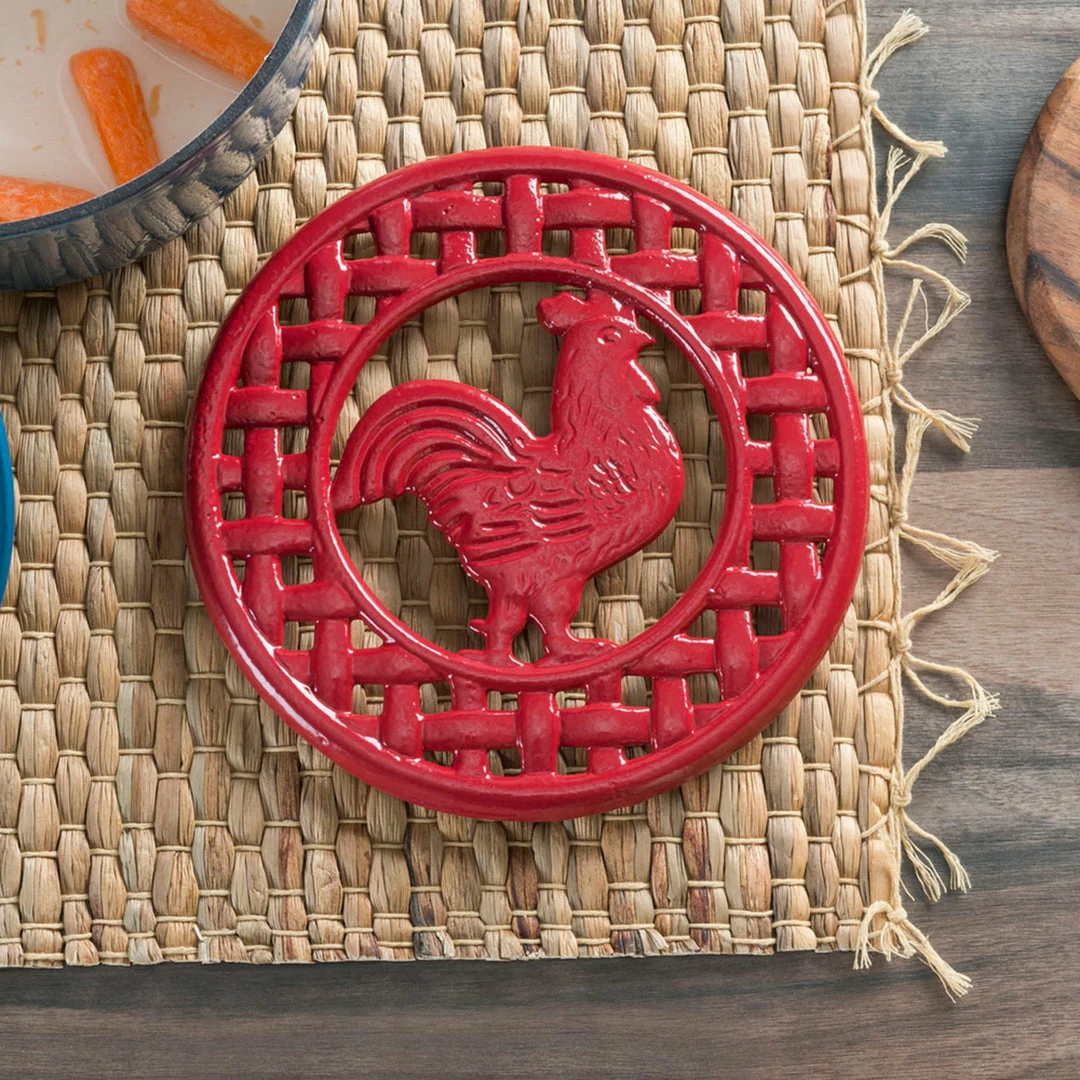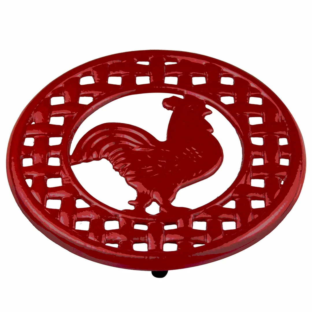 Keep hot pots & pans off the counter with this steel trivet. Made from heavy weight cast iron steel. Rust resistant. Beautiful simple rooster design is perfect for any kitchen.