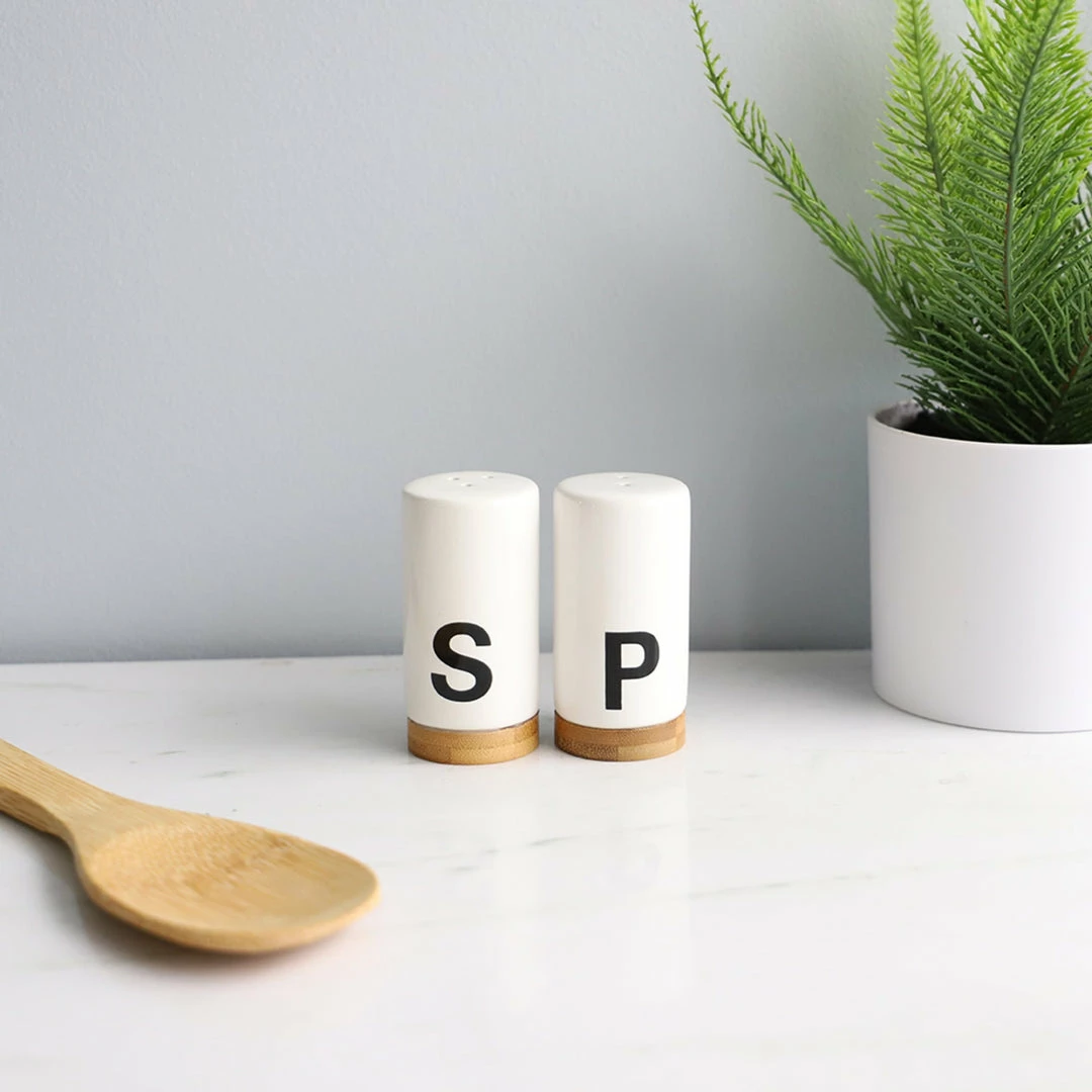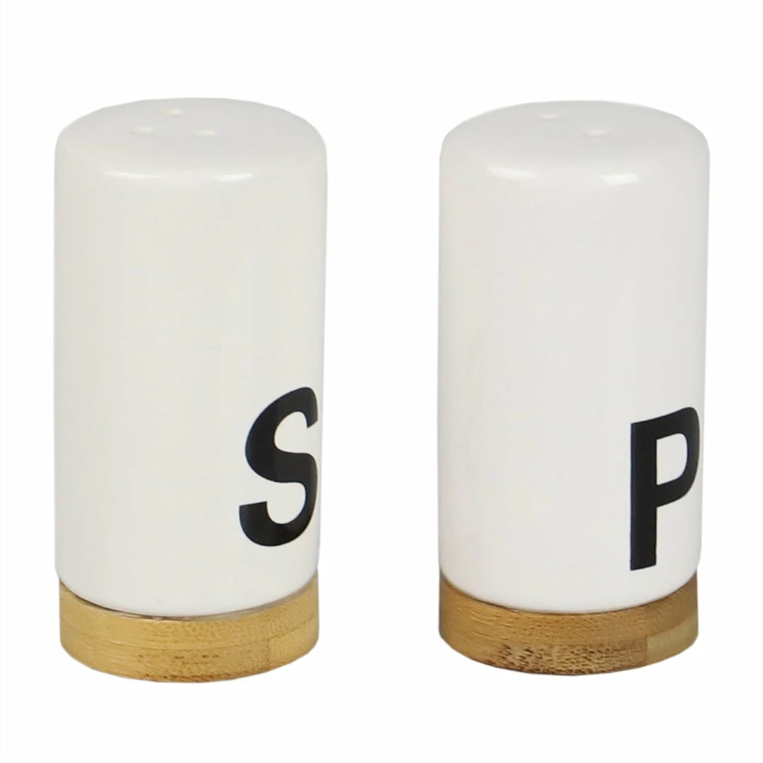 Control the amount of salt and pepper dispensed with every pour using this set of decorative salt and pepper shakers. With its small size it fits right at home on a table. Fill up the empty bottles with your own salt and pepper. Each bottle is made from thick ceramic and are beautifully decorated with bamboo bottoms for a nice, natural touch. The bottles are also labeled so you wonโt have mix up the oil from the vinegar. When youโre done just place the attached cap on top of the spout to keep it fresher for longer. Wipe the surface clean or hand wash with warm water and use gentle soap. 4 ounce capacity. Item dimensions may differ slightly due to the unique nature of the product. Color and finish may also differ from the images shown due to differences in monitor displays. Props and accessories are not included.