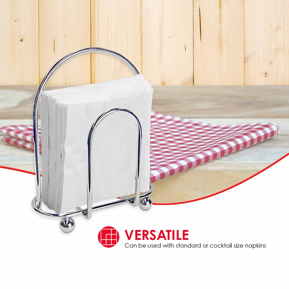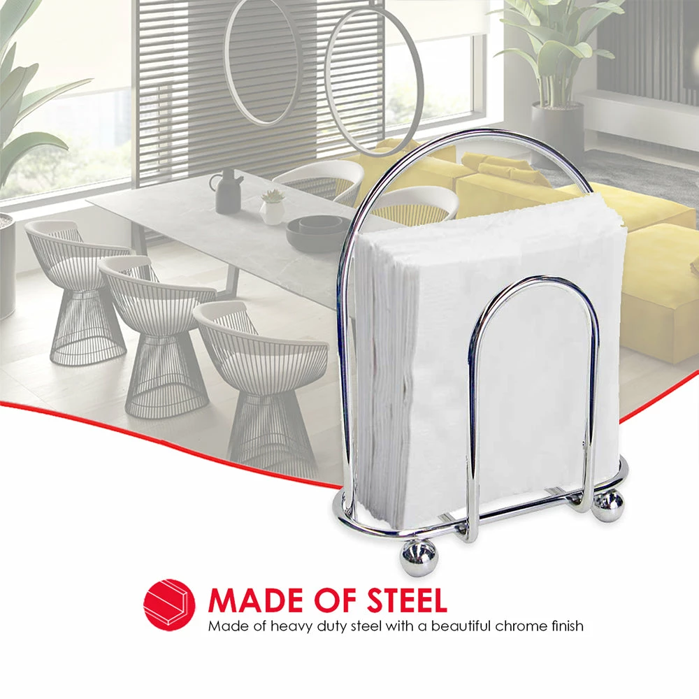 - DESIGNED TO LOVE AND LAST – Made of heavy duty steel with a beautiful chrome finish, this napkin stand is great for everyday dining and special occasions. The classic styling allows it to match effortlessly with existing steel appliances and chrome fixtures.