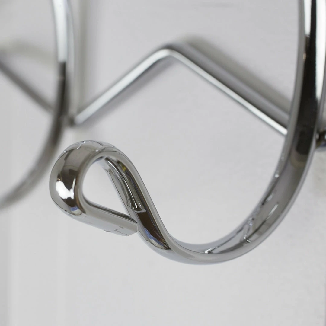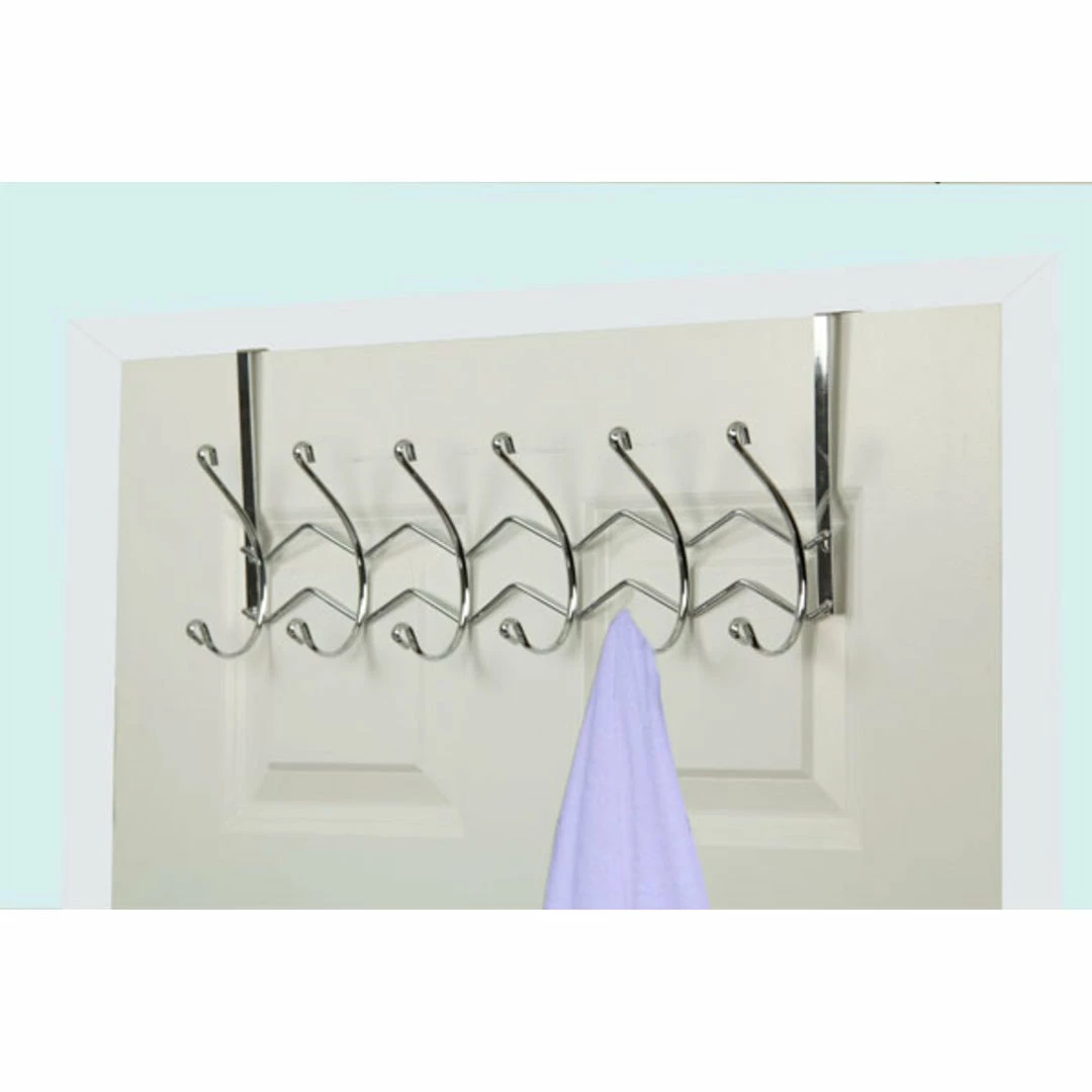 Hang and store towels, coats, clothing, and other house hold items with this contemporary styled hanging rack. Features 6 curved hooks atop a chevron designed frame that spruces up any interior space with its bold modern look. Perfect for storing leashes, coats, belts/accessories, towels and more. Conveniently hangs on most interior doors with its sturdy metal bracket. Made from heavy duty chrome. Rust resist.