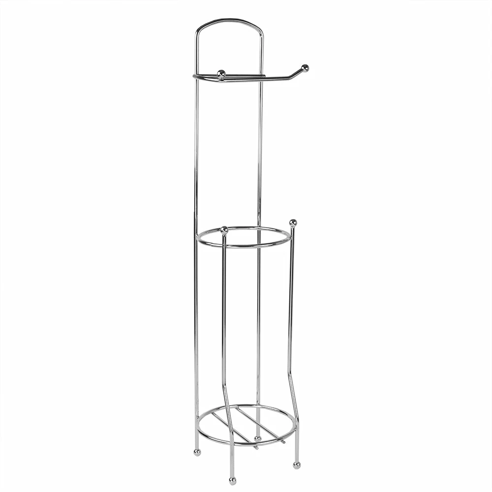 - STURDY MATERIAL & SIMPLE DESIGN – Made of durable steel, with a chrome-plated finish that adds a brightening touch to your bathroom area. The steel base helps to keep it from tipping, with 4 elevated feet help to keep toilet paper clean, dry, and off the floor.