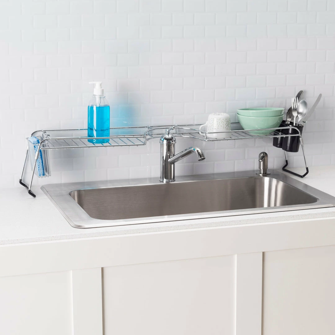 - Maximizes and expands counter space by siting snugly over the sink, keeping all daily necessities from bottle soap, silverware, sponges within reach with no hindrance to use the faucet.
