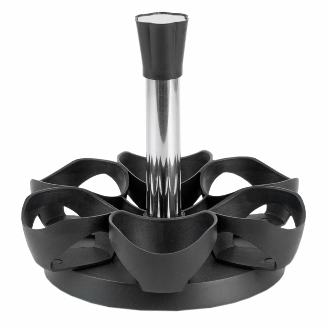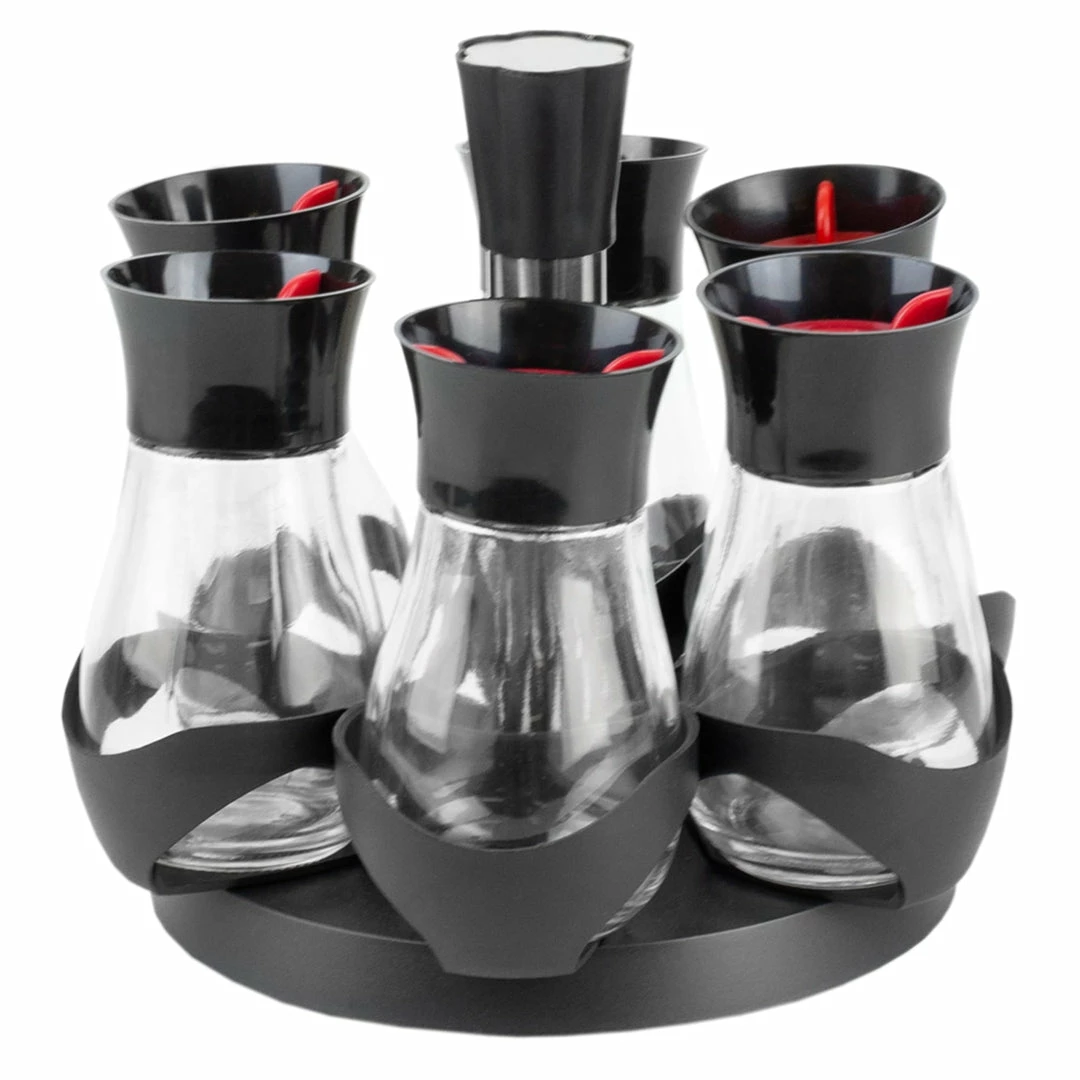 If having your essential herbs and spices right at your fingertips is how you want to streamline your collection of spices, then give this revolving spice rack a twirl. Situated on a smooth spinning base, it rotates a full 360 degrees, so you can easily pick out the flavor you want to use while cooking. The sleek rack fits neatly by the stovetop without consuming too much space, freeing up more room on the counter for setting aside ingredients, recipes, culinary tools. Each of the six air-tight 4.2 oz jars come un-filled, so you can load it up with whatever seasonings that best meshes with your culinary style.