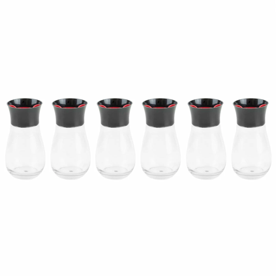 - WHATS INCLUDED IN THE BOX – You provide the flavors and weโll provide the storage. The set is fully packaged with a set of 6 potion styled jars for an elegant look and a contemporary spice rack to keep it all organized. The clear glass bodies showcase how much is left without needing to unscrew the top. Remove the lid, and a wide opening makes it a snap to reload spices in a mess-free manner.